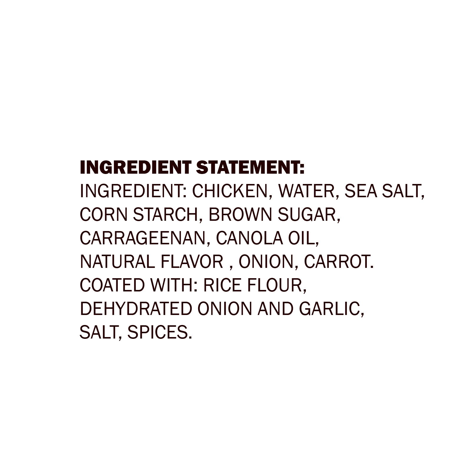 - Made from chicken raised with: No Antibiotics Ever, All Vegetarian Diet, No Animal By-Products