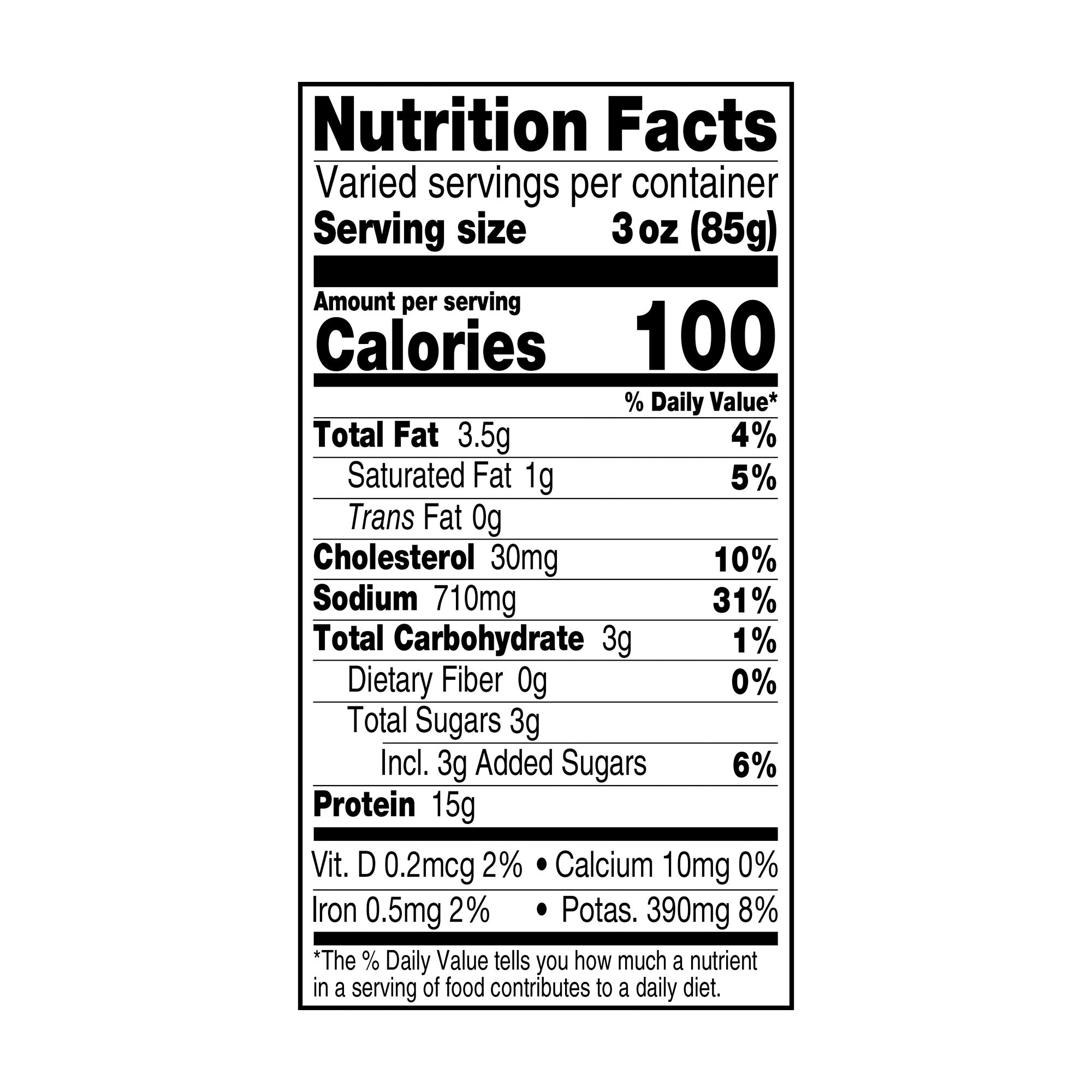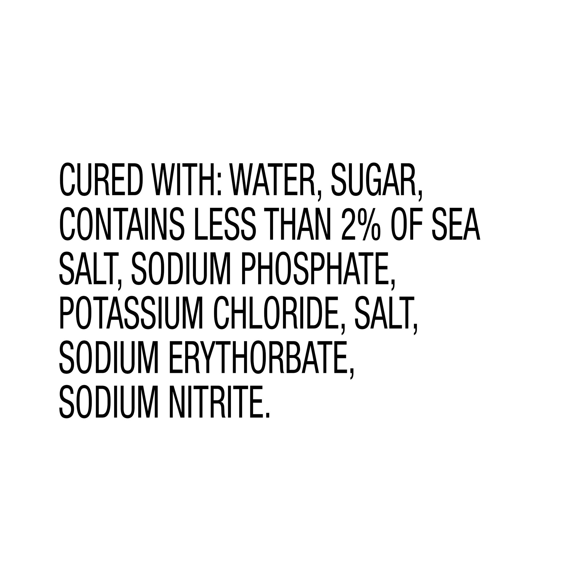 Ingredients: Cured with: Water, Sugar, Contains Less than 2% of Sea Salt, Sodium Phosphate, Potassium Chloride, Salt, Sodium Erythorbate, Sodium Nitrite.