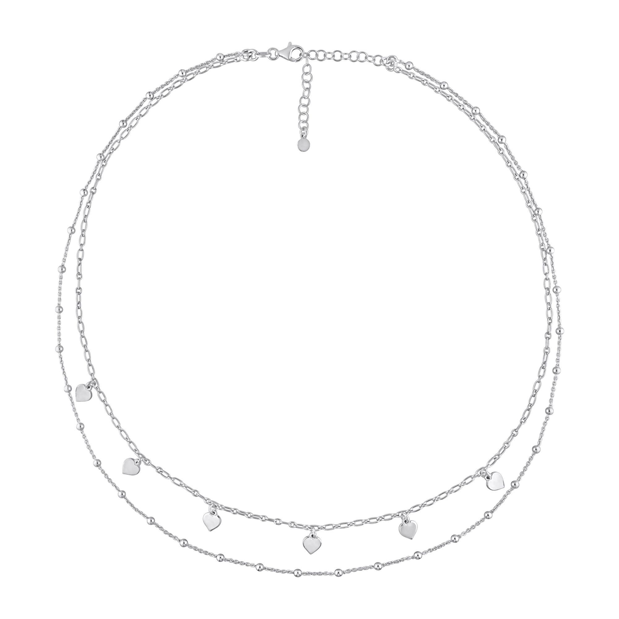 Heart Charms Chain Layered Necklace in Sterling Silver