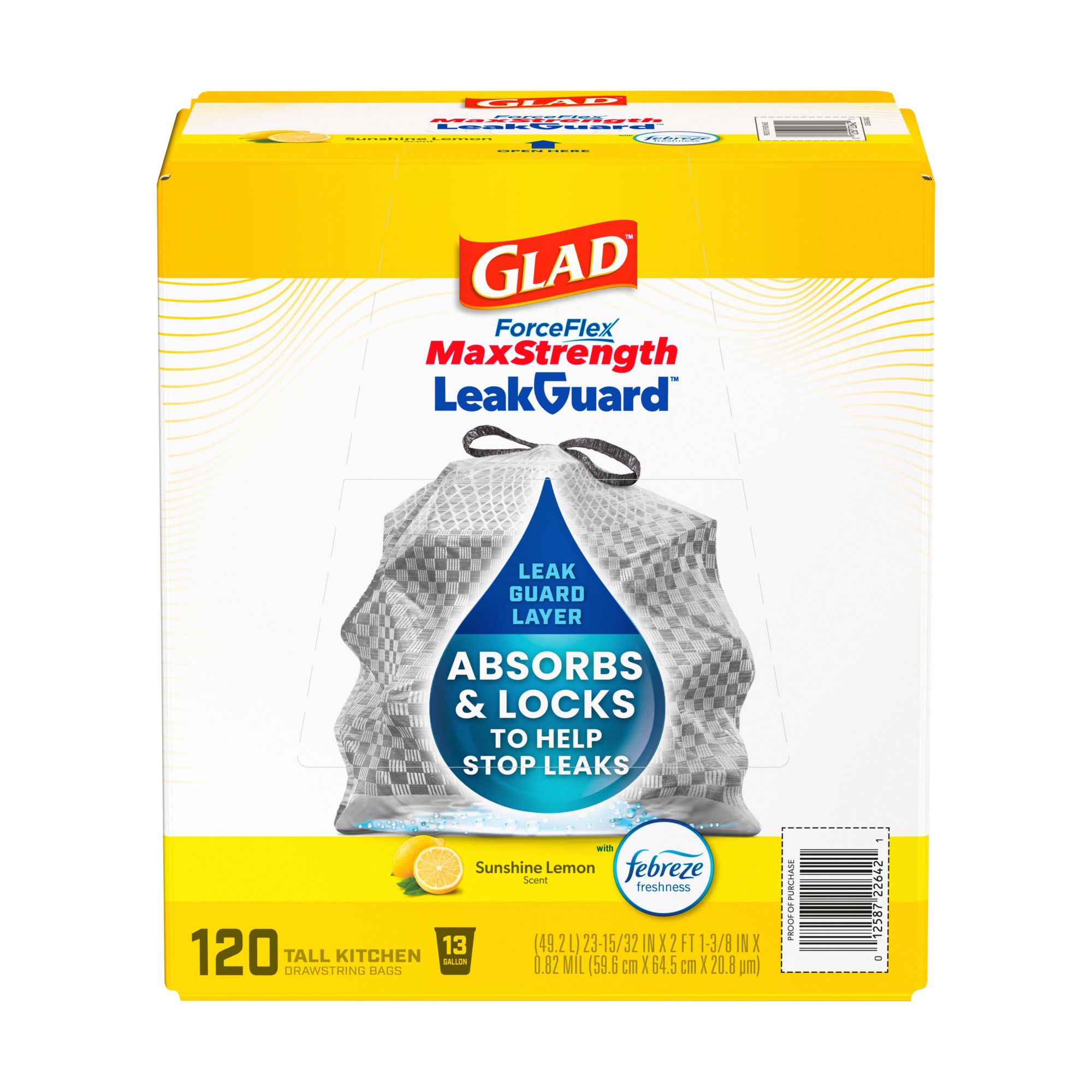 Trust Hefty Ultra Strong 13-Gallon Trash Bags to keep your kitchen waste contained—all the way from the can to the curb. Thanks to 6-in-1 Protection, these tall kitchen trash bags offer flexible strength, a secure closure, patented odor control, and resistance to leaks, punctures, and rips. The result is the highest protection you can get in flexible 13-gallon trash bags. Hefty’s stretchy strength means you don't have to worry about unexpected bag breakage and inconvenient messes when you use these tall kitchen garbage bags. A break-resistant grip drawstring makes it easy to close the bag and cart it away without incident. As a bonus, these scented white trash bags include patented Arm and Hammer continuous odor control and a Fabuloso scent to keep unpleasant smells at bay and keep your kitchen smelling fresh and clean. All Hefty trash bags are backed by a 100% satisfaction guarantee.