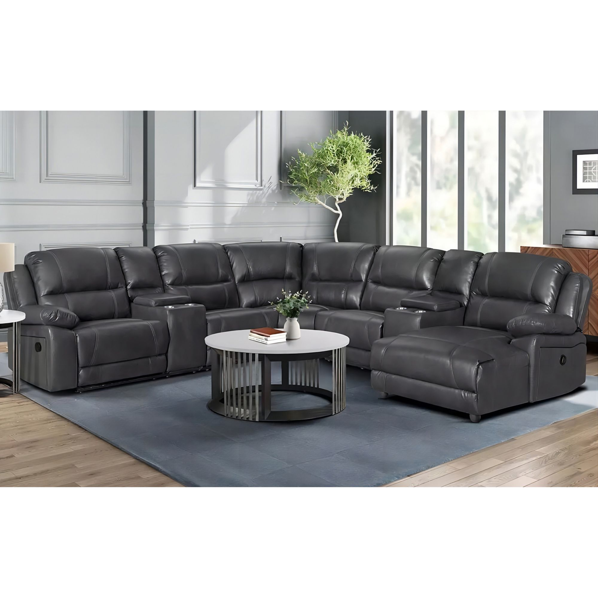 Includes four-piece sectional with three manual recliners
