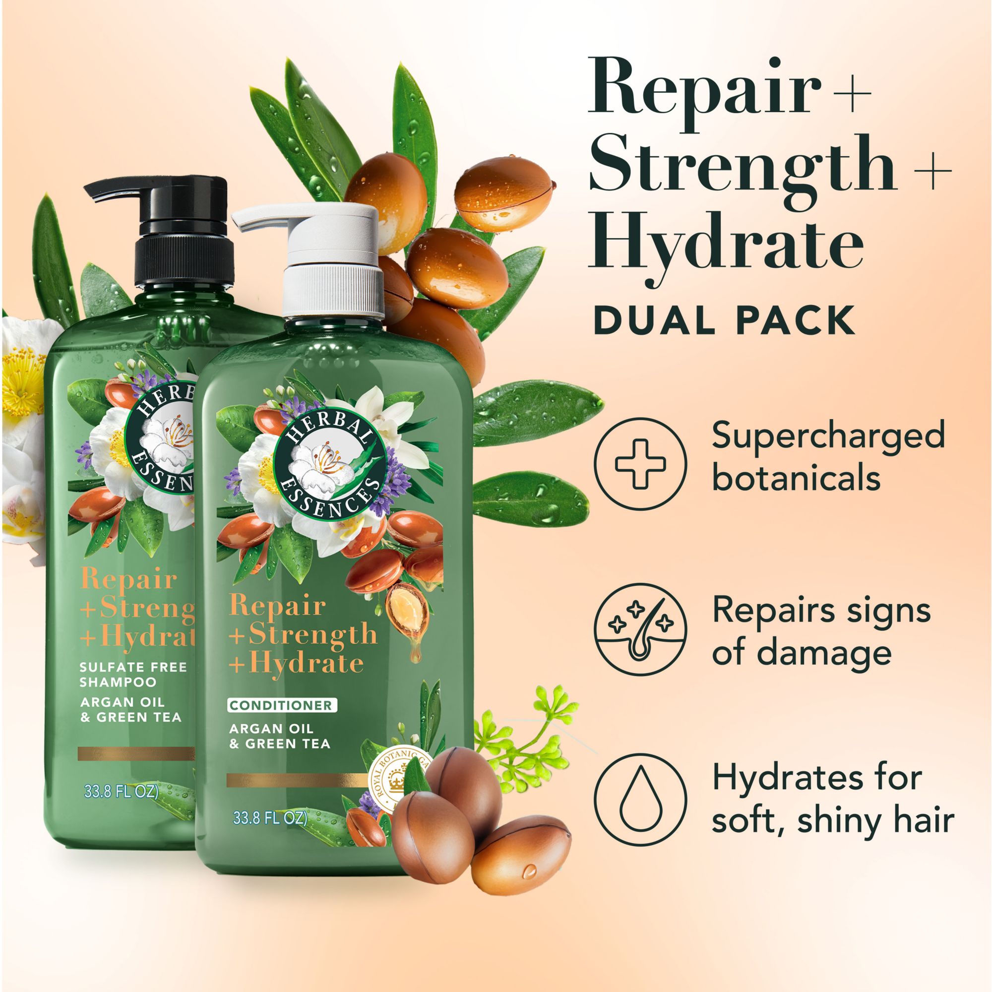 Herbal Essences Repair + Strength + Hydrate Argan Oil & Green Tea Shampoo & Conditioner, 2 pk./33.8 oz.