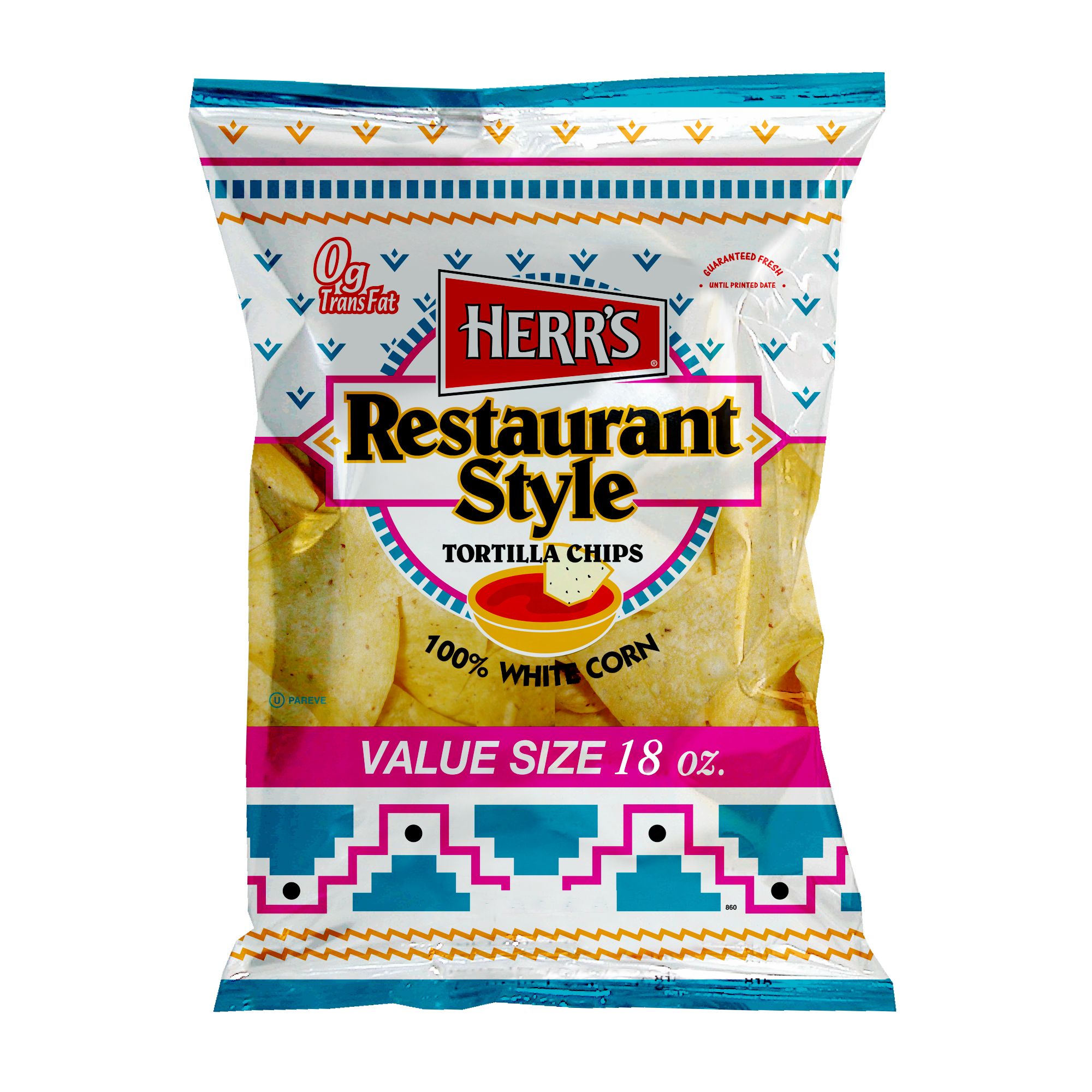 The perfect and tasty addition to lunchboxes, tailgate parties, movie night, picnics and so much more. Made with 100% white corn, this 18 oz. bag of HERR'S Restaurant Style Tortilla Chips will make you the hit of any and every occasion.
