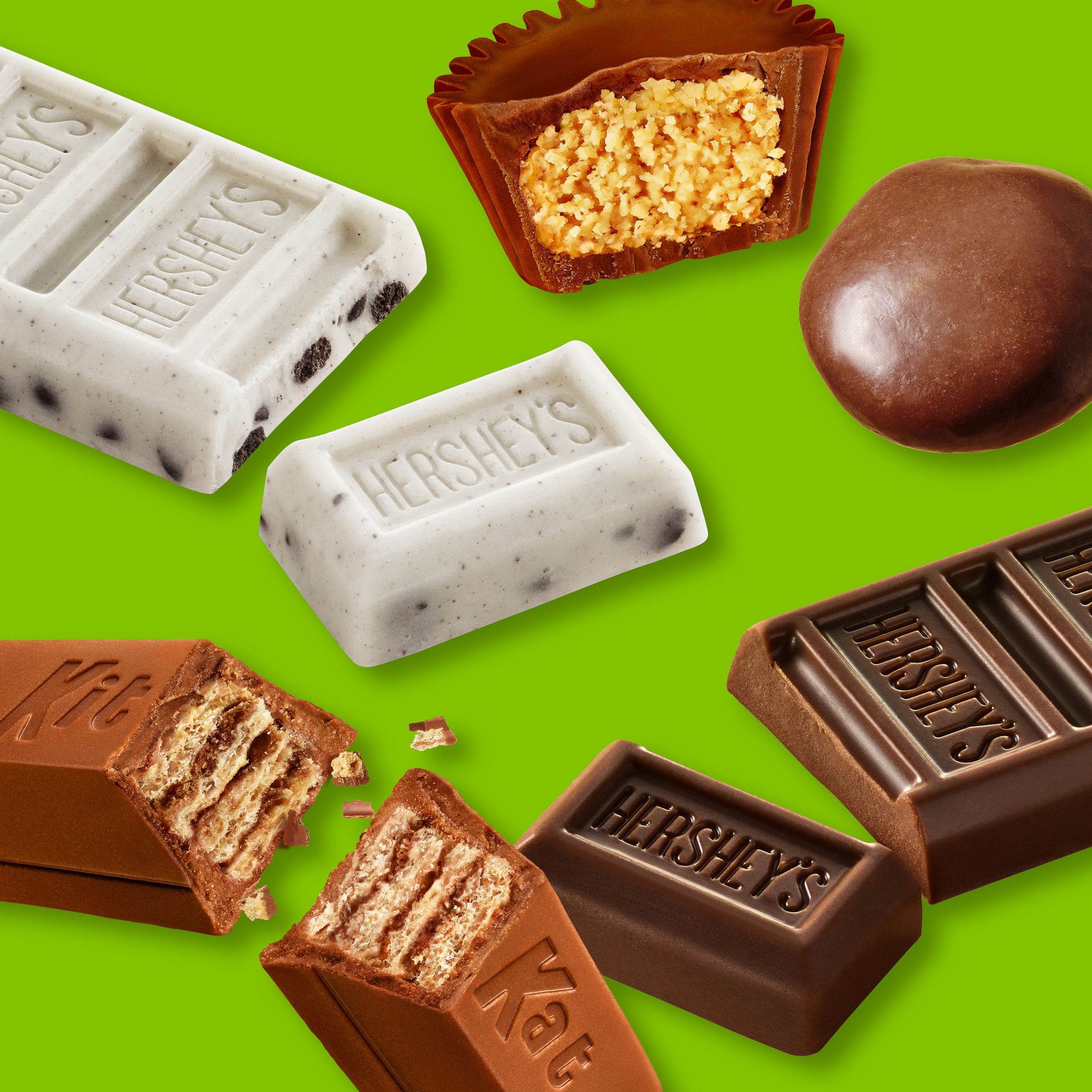 Includes Reese's milk chocolate peanut butter cups, Kit Kat milk chocolate wafer bars, Hershey's Cookies 'n' Creme candy bars, Hershey's milk chocolate candy bars and Milk Duds chocolate caramel candy, 210 ct.