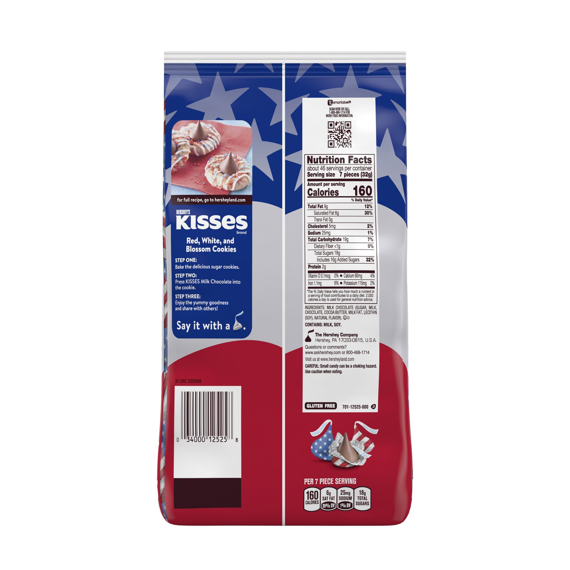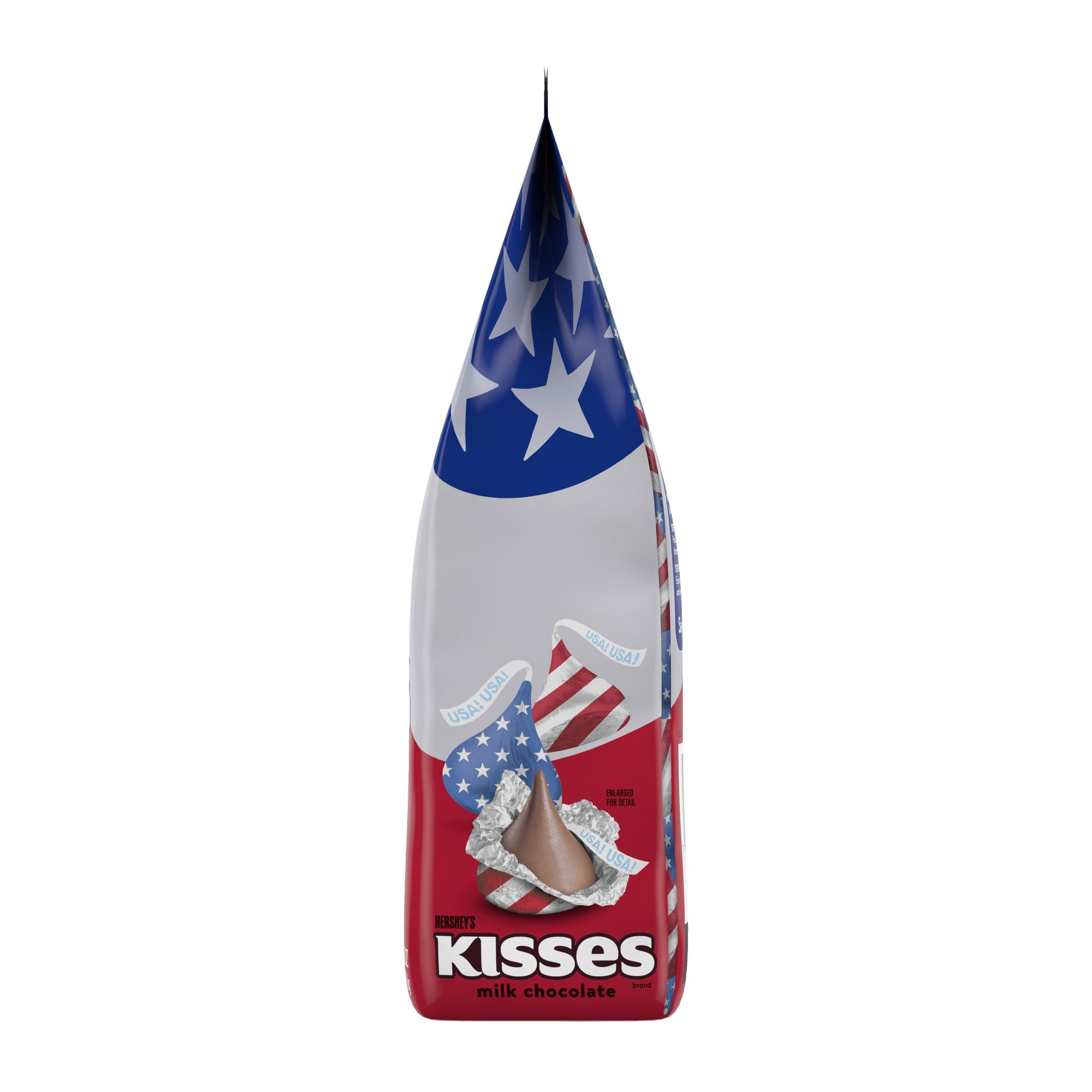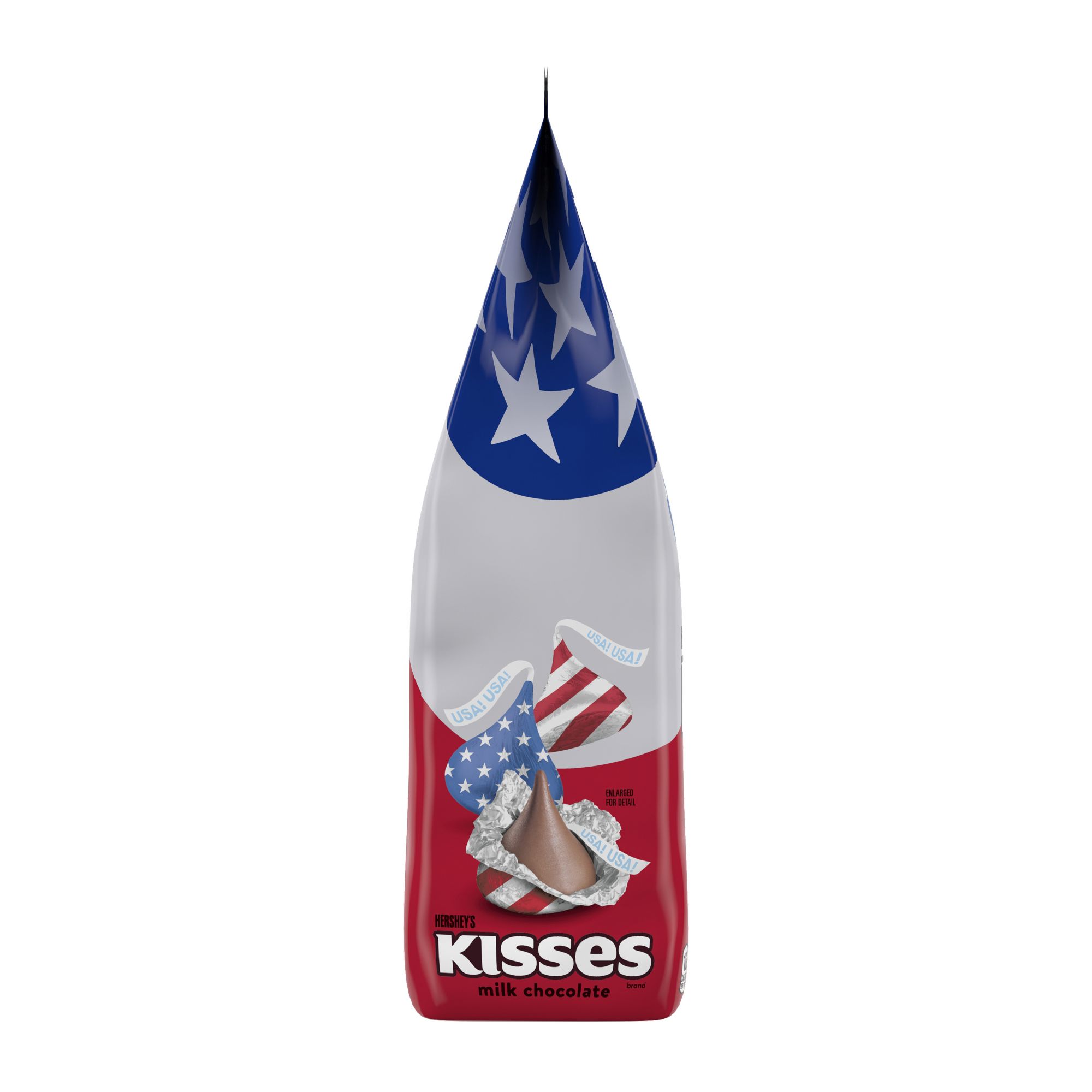 Contains one 52-ounce party pack of Hershey's Kisses Milk Chocolate Candy with Patriotic Foils