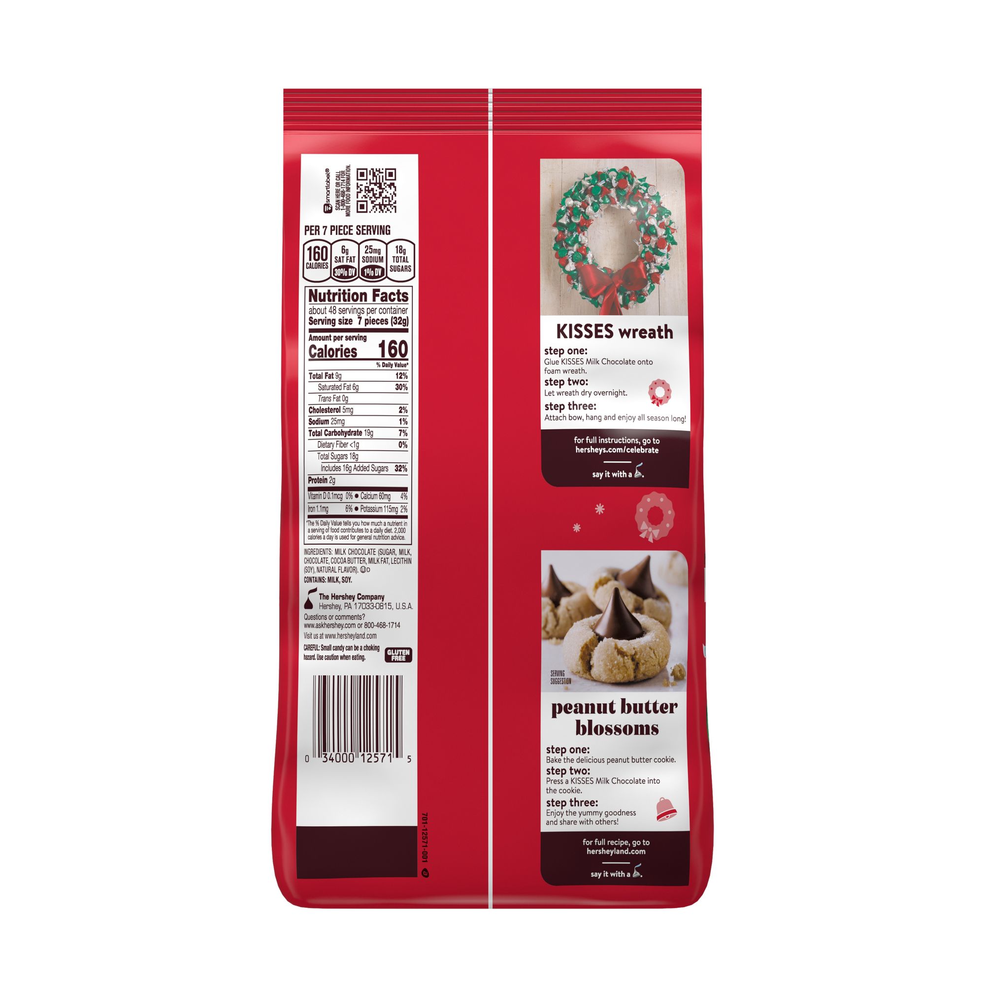 Contains one (1) 53.76-ounce, 335-piece bulk bag of Hershey's Kisses Milk Chocolate Candy