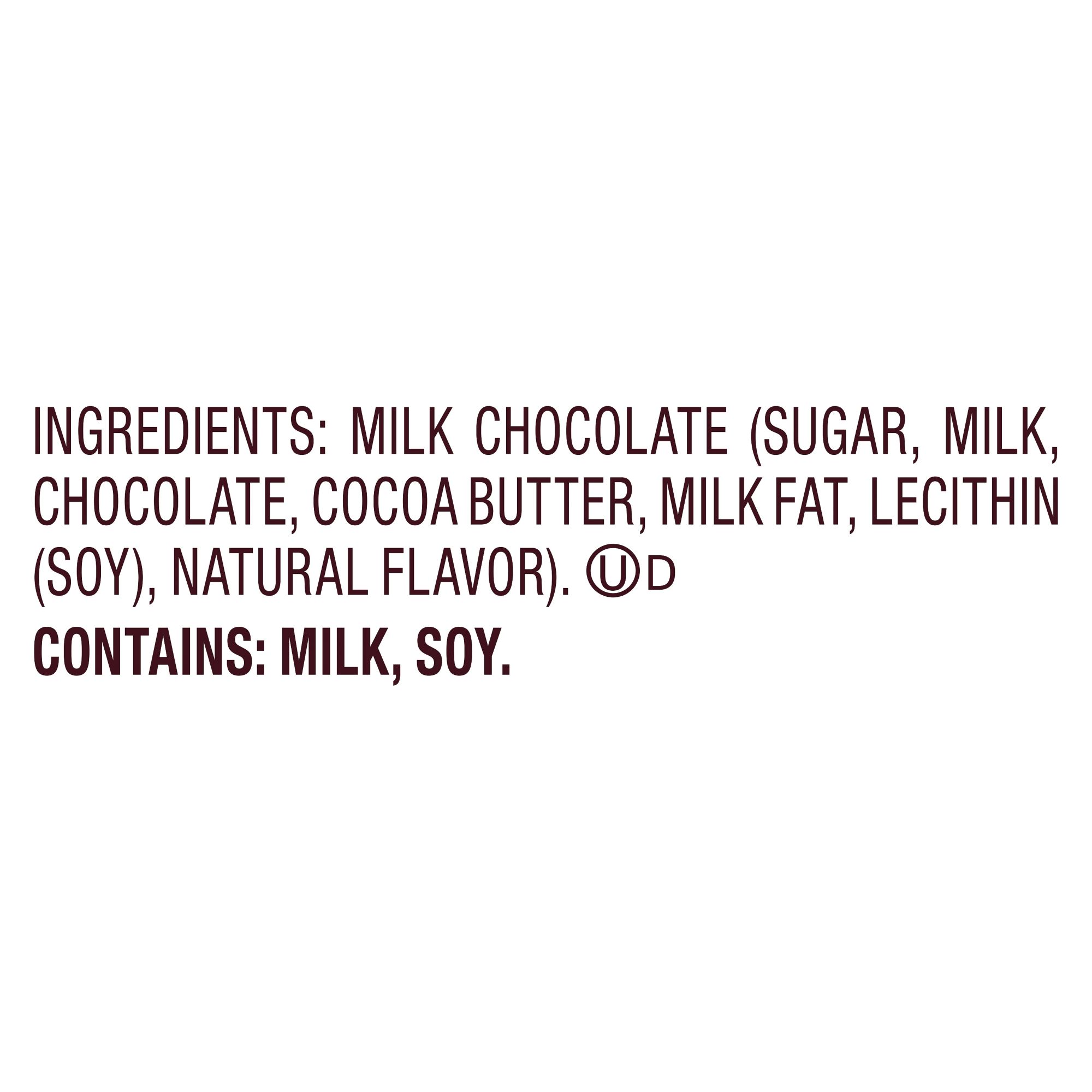 Ingredients: Milk Chocolate (Sugar, Milk, Chocolate, Cocoa Butter, Milk Fat, Lecithin (Soy), Natural Flavor).