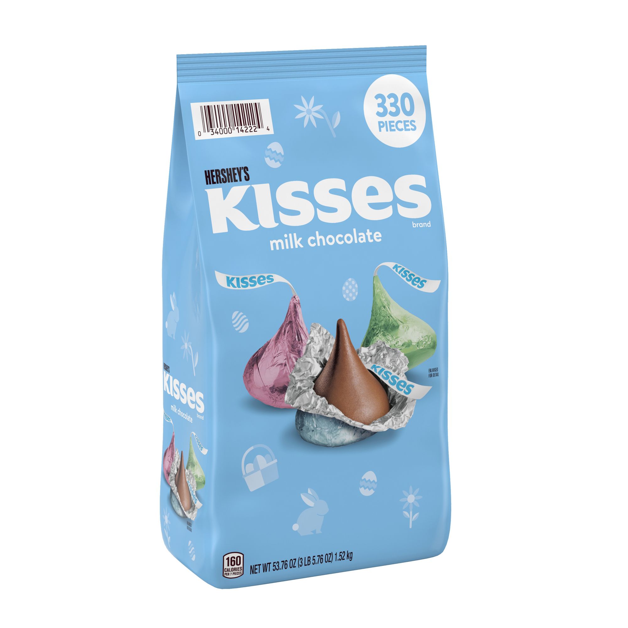 Contains one (1) 53.76-ounce bulk bag of Hershey's Kisses Milk Chocolate Candy