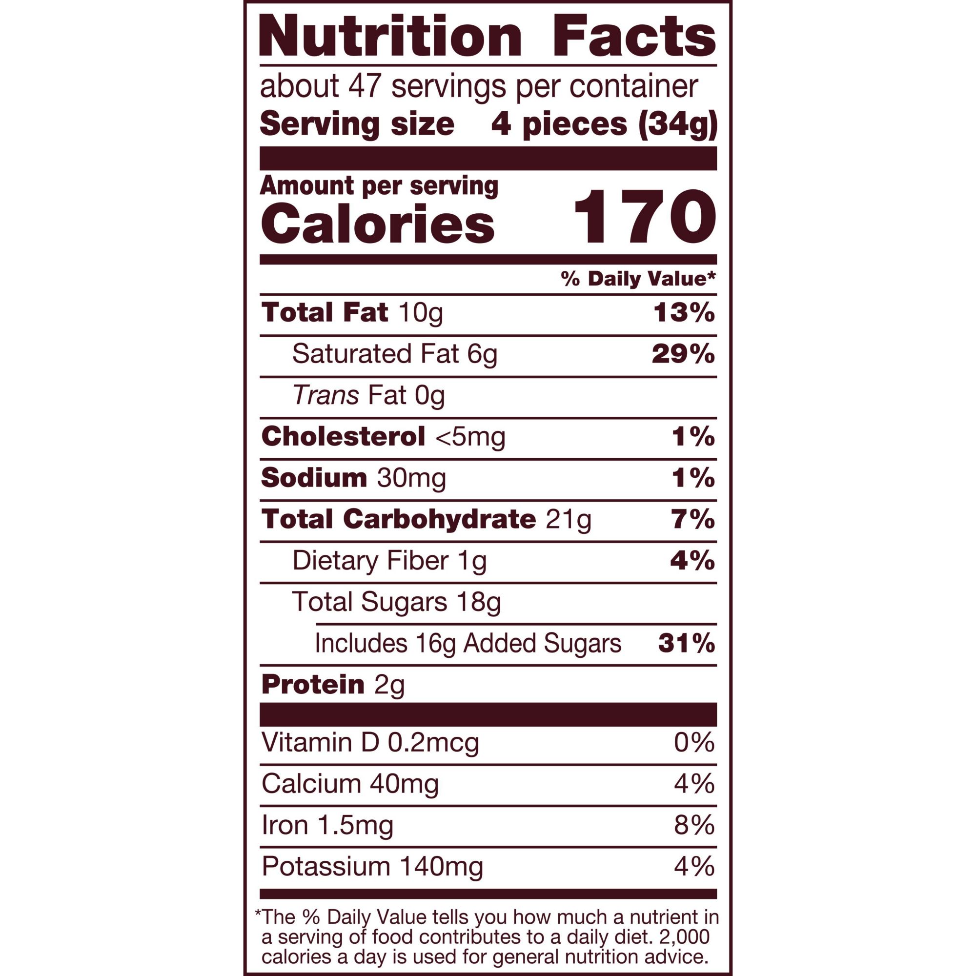 Ingredients: Sugar, Chocolate, Vegetable Oil (Palm Oil, Palm Kernel Oil, Shea Oil, Sunflower Oil, &/Or Safflower Oil), Peanuts, Cocoa Butter, Milk, Lactose (Milk), Skim Milk, Reduced Protein Whey (Milk), Rice Flour, Contains 2% Or Less Of: Cocoa Processed With Alkali, Milk Fat, Cocoa, Lecithin (Soy), PGPR, Malt Extract, Monoglycerides, Salt, Natural & Artificial Flavor.
