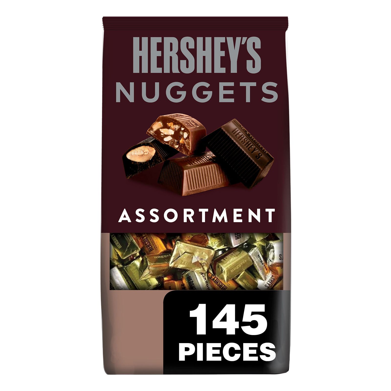 Melt-in-your-mouth and on-the-go snacking meet superior selection with creamy, decadent assorted chocolates in the perfect two-bite Hershey's Nuggets servings for Halloween, Christmas, Valentine's Day and Easter candy selections