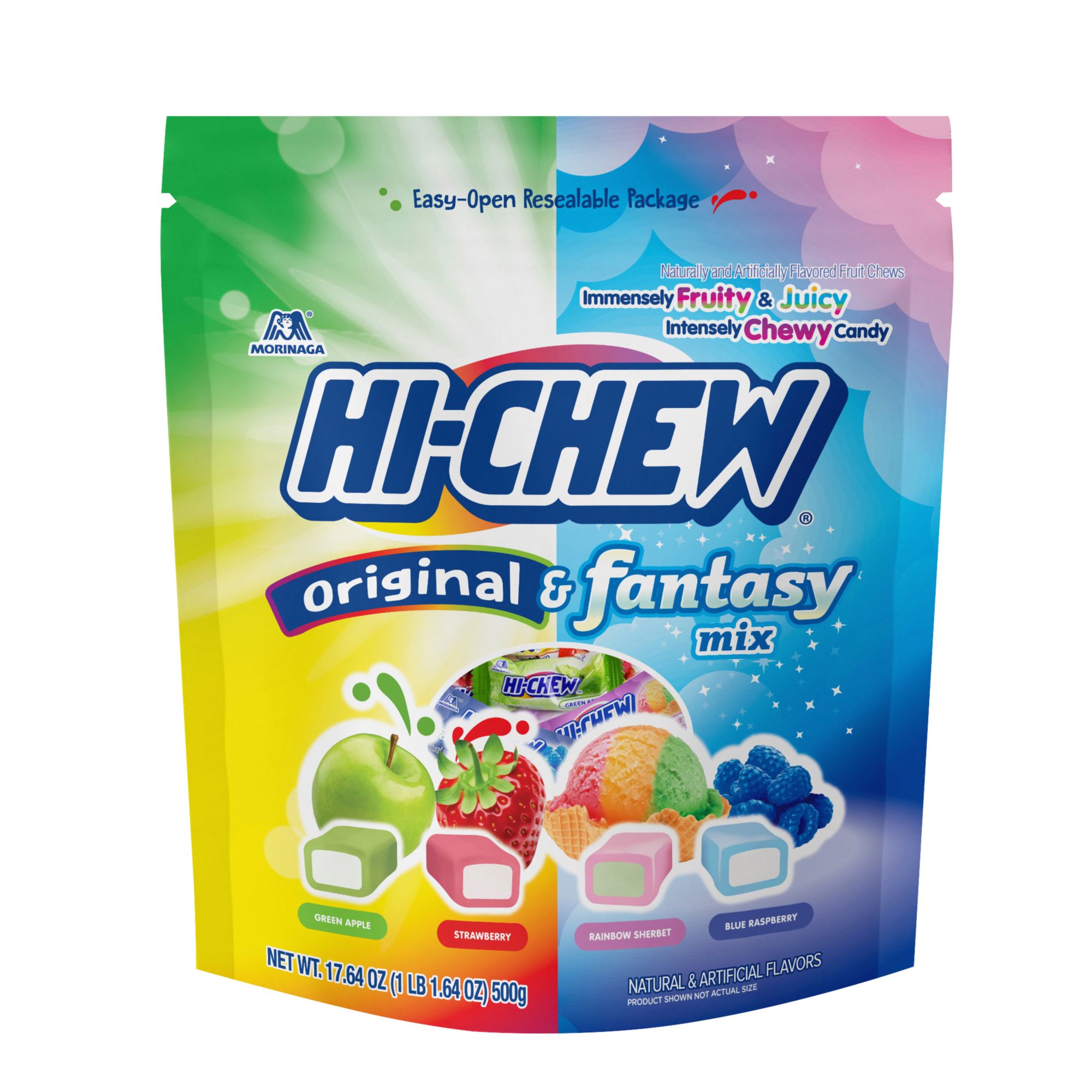 Hi-Chew Original & Fantasy Mix, Strawberry, Green Apple, Rainbow Sherbet, Blue Raspberry, 17.64 oz.