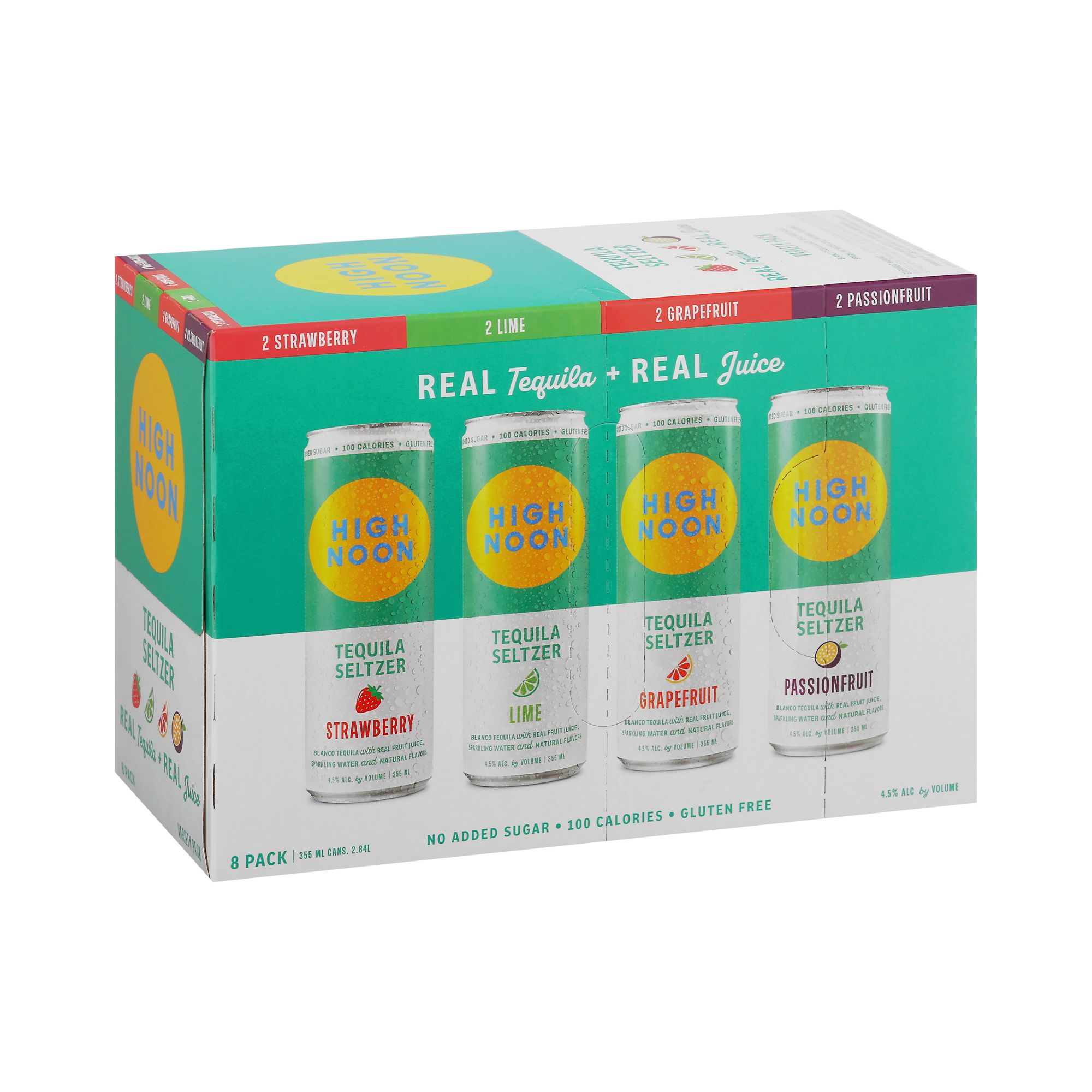 Tequila lovers rejoice! High Noon's sun will shine even brighter with the release of High Noon Tequila seltzer, made with real blanco tequila and real juice, sparkling water and natural flavors. Each High Noon Tequila Hard Seltzer flavor, Lime, Strawberry, Passionfruit, and Grapefruit, has fresh fruit flavors with a hint of sweetness, layered with Silver Tequila, and a sparkling finish. No sugar added, 100 calories, and gluten free hard seltzer.