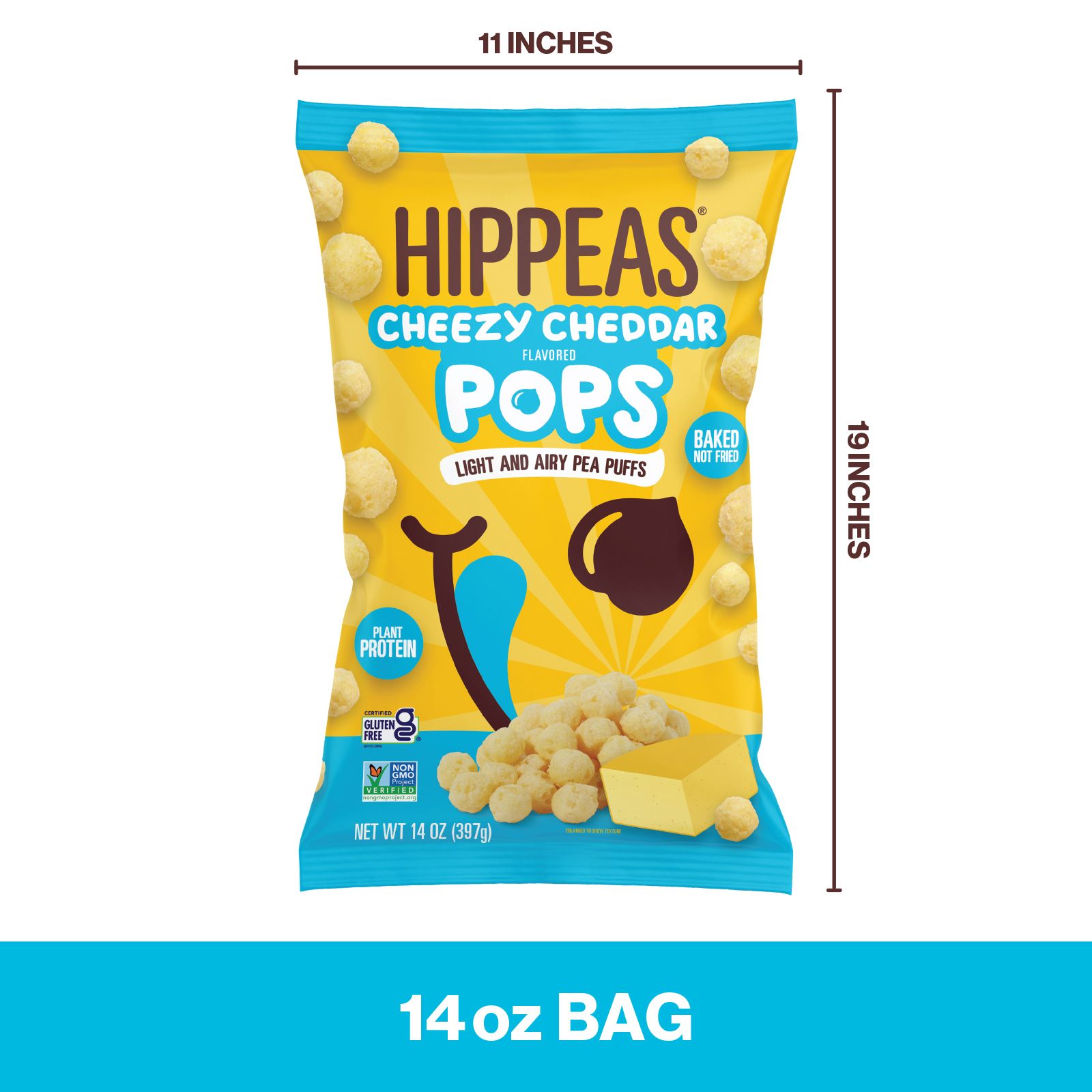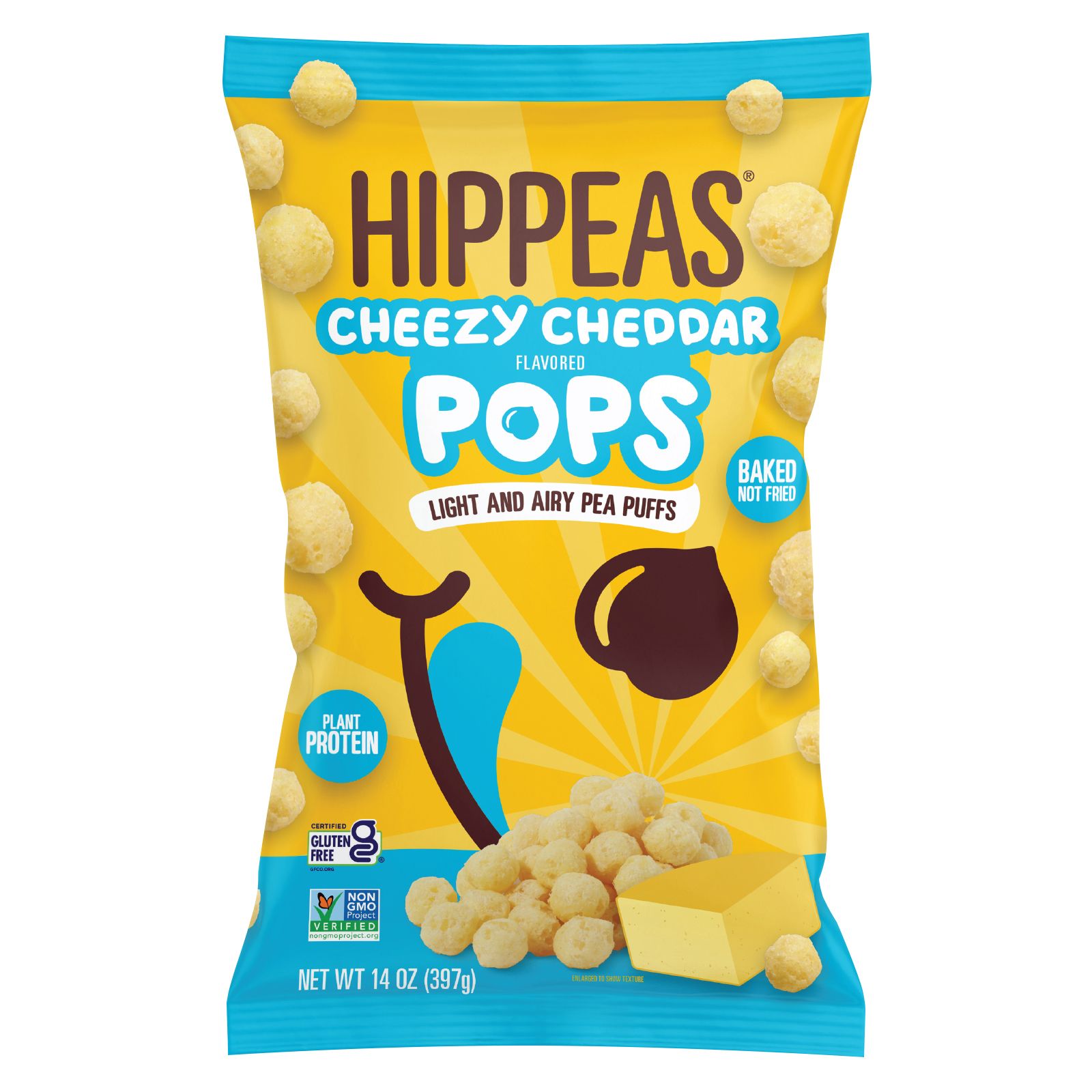 Hippeas Cheezy Cheddar Pops are intensely cheese-flavored, light and airy, gluten free, non-GMO and vegan. These snacks contains 3g of protein and 2g of fiber per 1 oz. serving. Made from yellow peas and chickpeas, Cheezy Cheddar Pops are bite-sized and have a melt-in-your-mouth texture. Hippeas are the new go-to snack for those who demand great taste and high-quality ingredients.