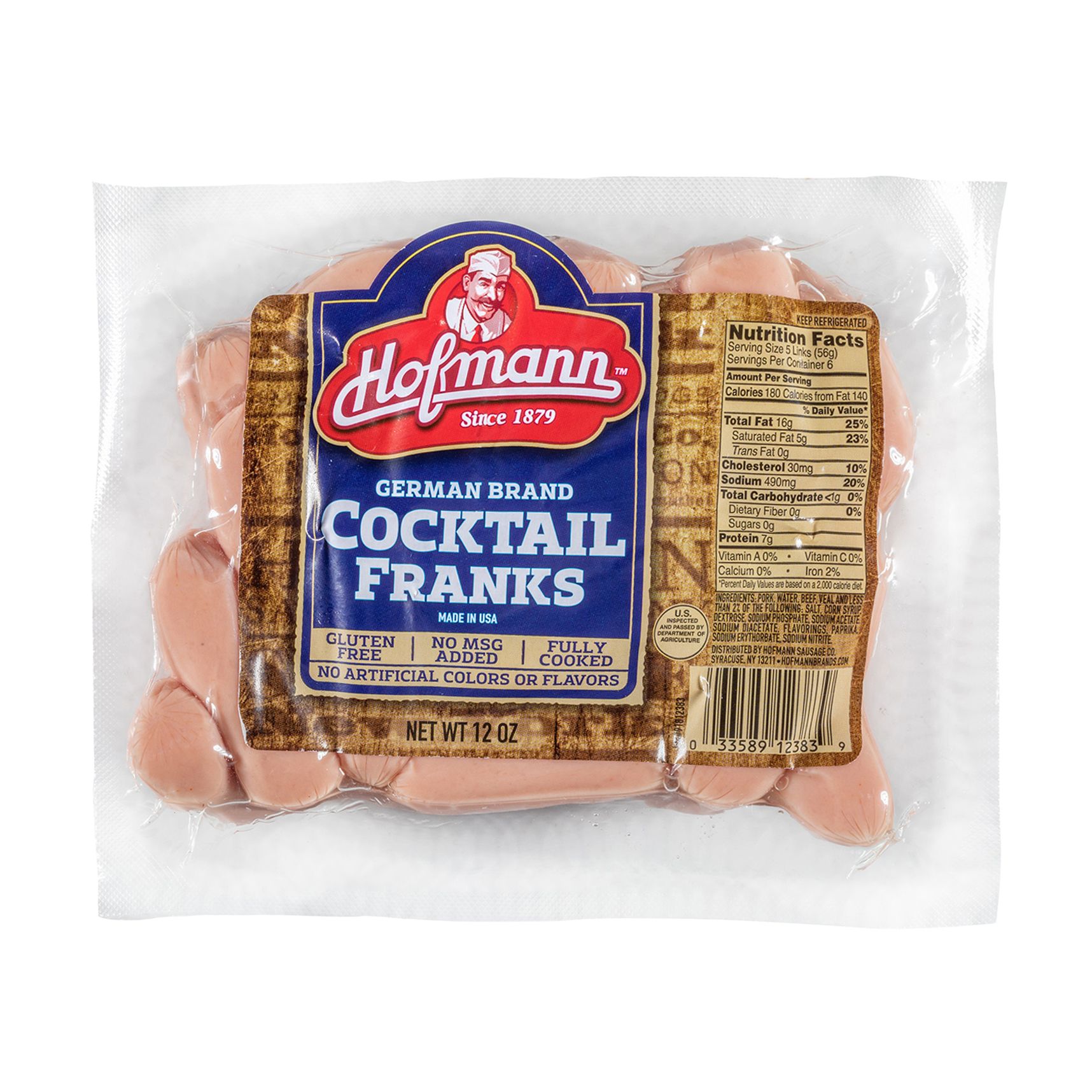 Proudly made in the USA. Hofmann Sausage Company German Brand Cocktail Franks are the bite-size mini version of the famous skinless German Franks...mini but mighty in flavor. These little weenies are made with quality meat and select spices for a taste uniquely Hofmann. No fillers, by-products, artificial colors, or artificial flavors are used. Perfect as an appetizer for any size party or gathering or for snacking – feed one or many. Fully cooked, these mini franks require minimal prep time making them easy to prepare and serve. They are versatile, meaning you can heat them stovetop, in a crockpot, or in the oven in a deep oven-safe dish. Enjoy Hofmann Cocktail Franks plain or stir in your favorite BBQ sauce and any jelly flavor and let simmer. Serve warm with party toothpicks or mini forks. Recipes online. They can be eaten solo or as part of a larger recipe like franks 'n' beans.