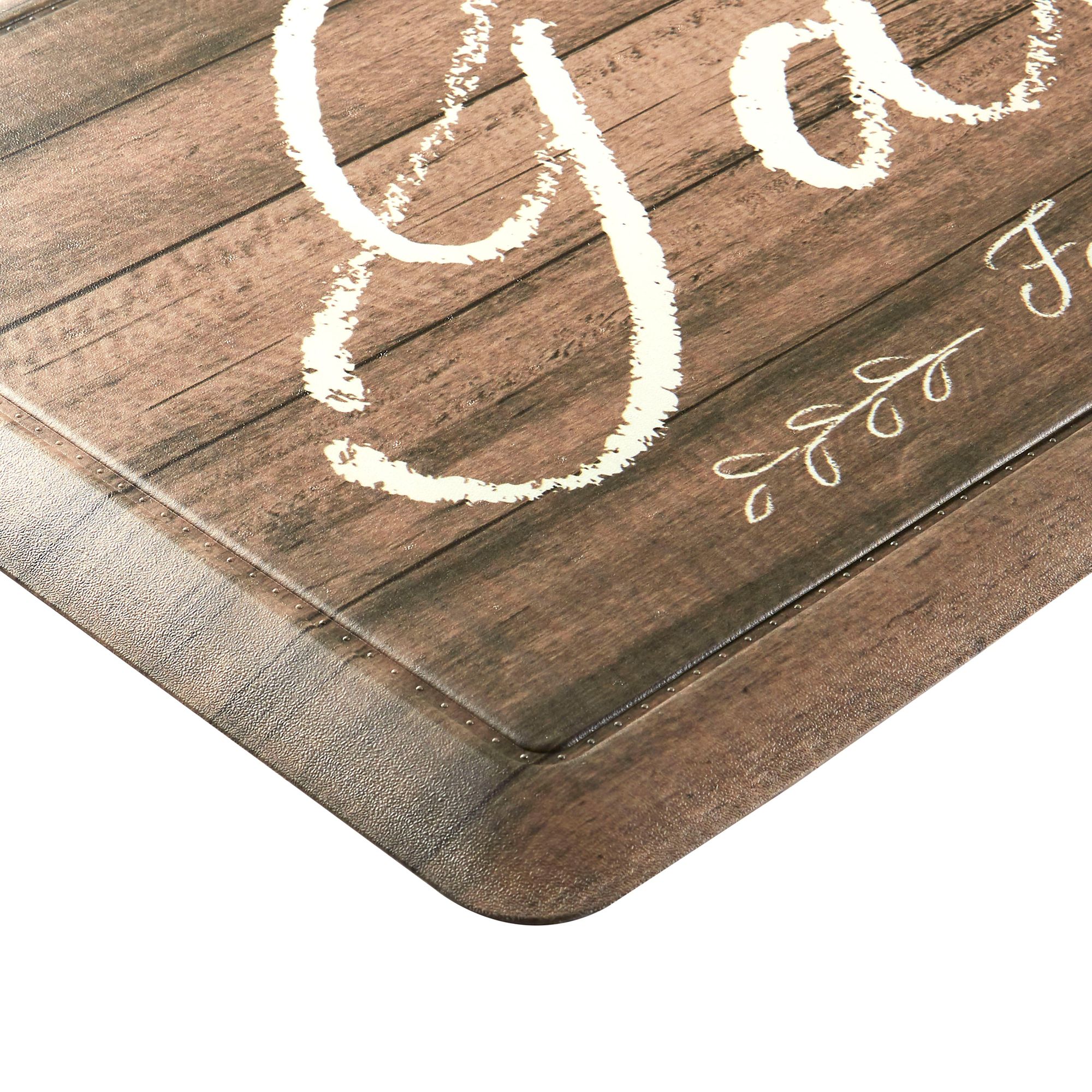Create a warm atmosphere in your space with the Cat Cora Printed Embossed Gentle Step kitchen mat by Home Dynamix. This kitchen mat features a family-friendly design with a farmhouse-inspired flair that will give a warm and cozy touch to your home décor. Machine-made of durable PVC that is ideal for wherever you may often stand for relief while you work, cook, or clean. Constructed with a textured PVC backing, this kitchen mat provides a non-slip surface for a safe step on any flat surface.