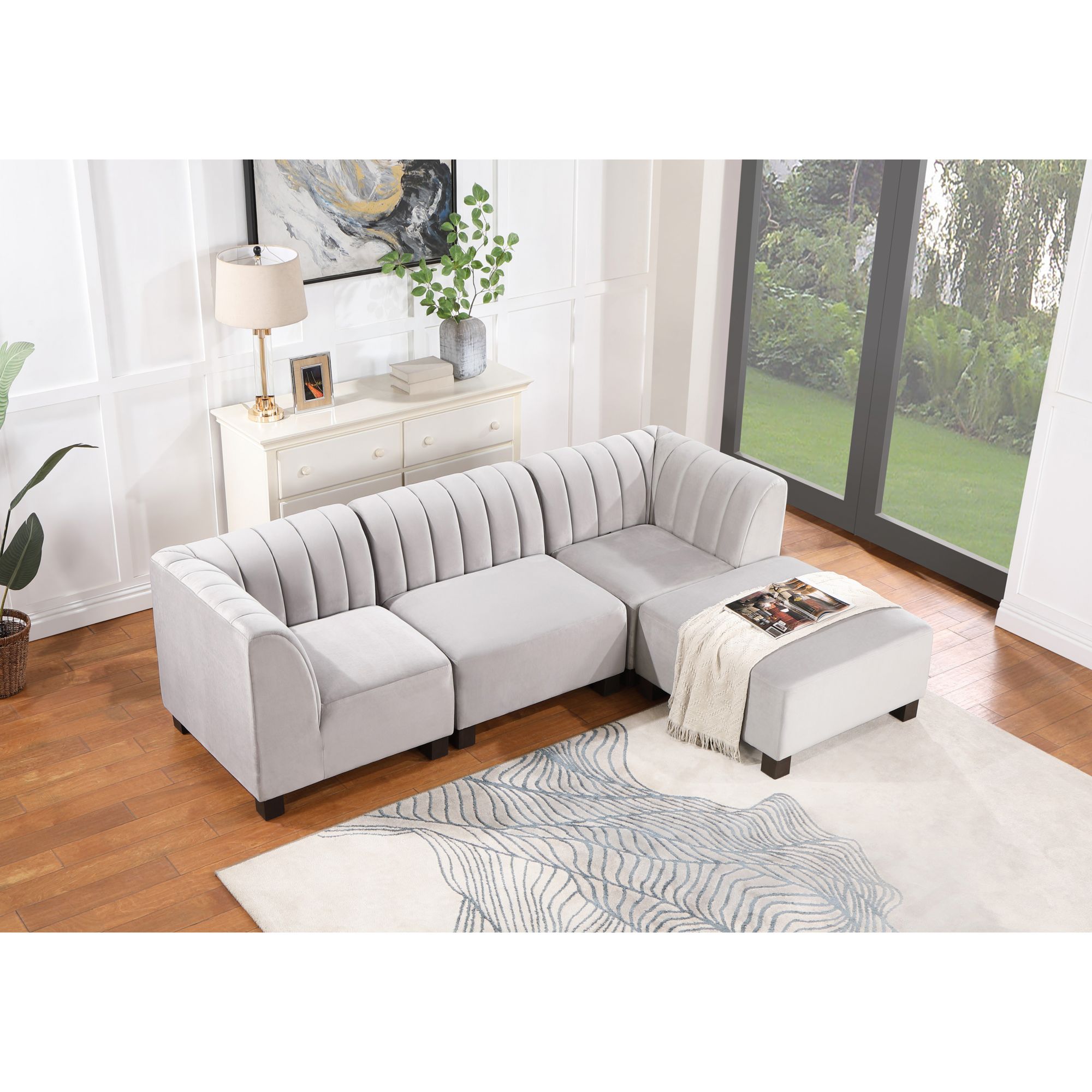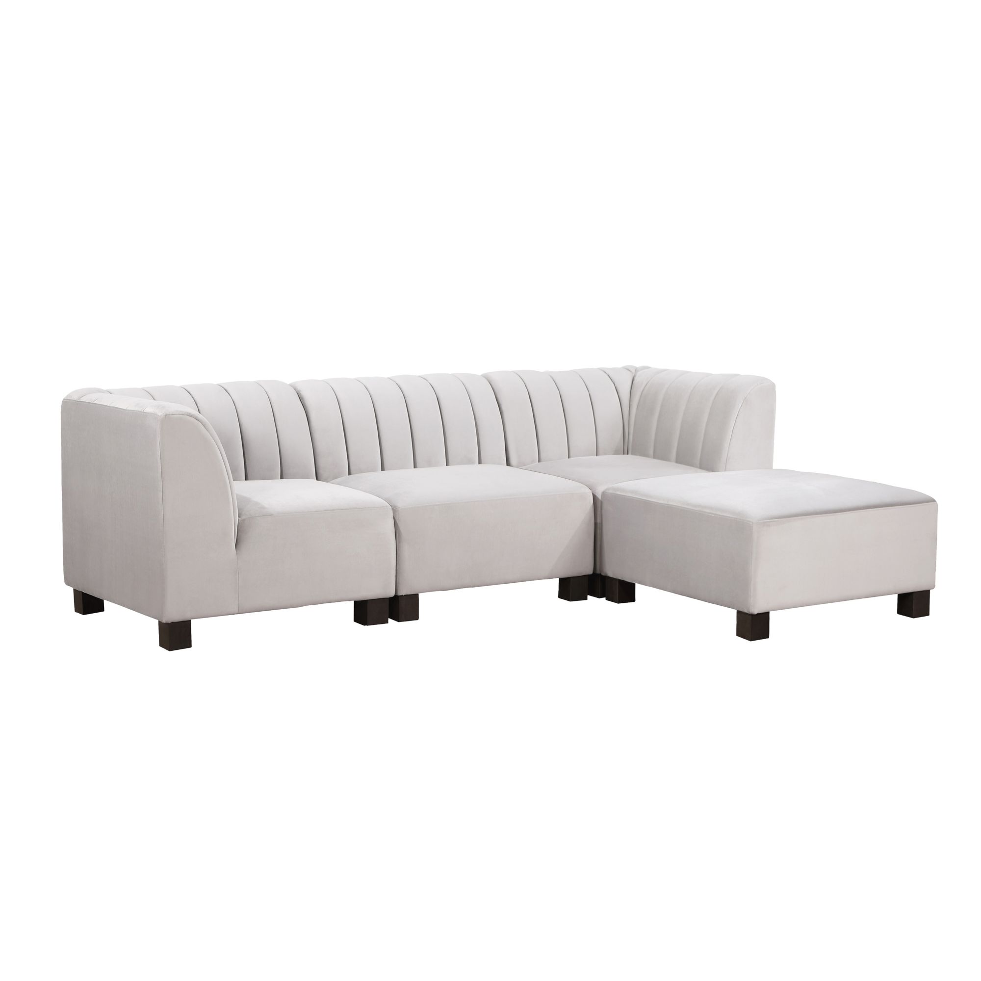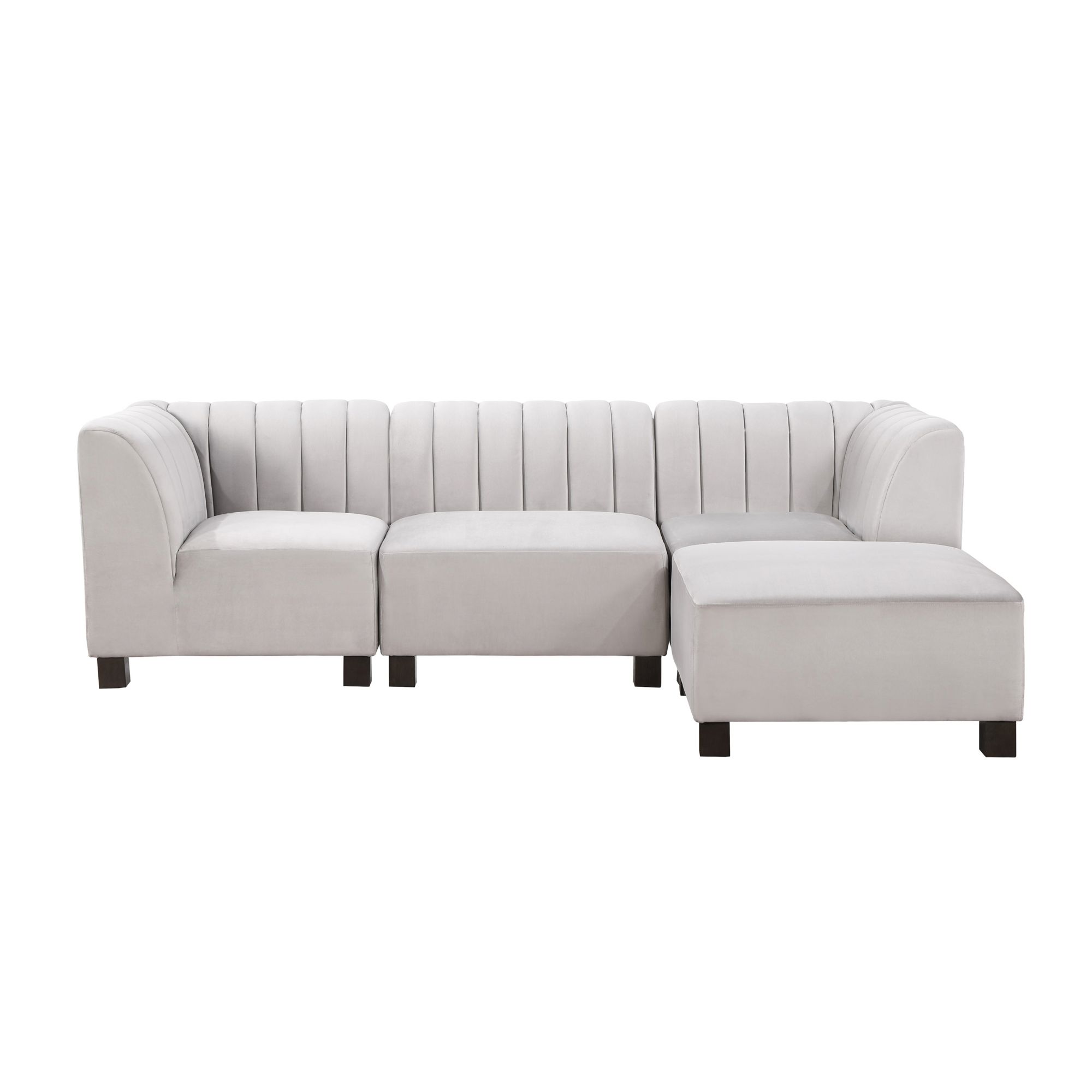 Glam up your lounge space with our modular Sectional Collection. Built to last and beautifully crafted, the seating features a deep profile with plush cushioning and supportive springs, sleek channeled upholstery, and a low-profile base on recessed block feet. Add the ottoman to create the perfect place to stretch out.
