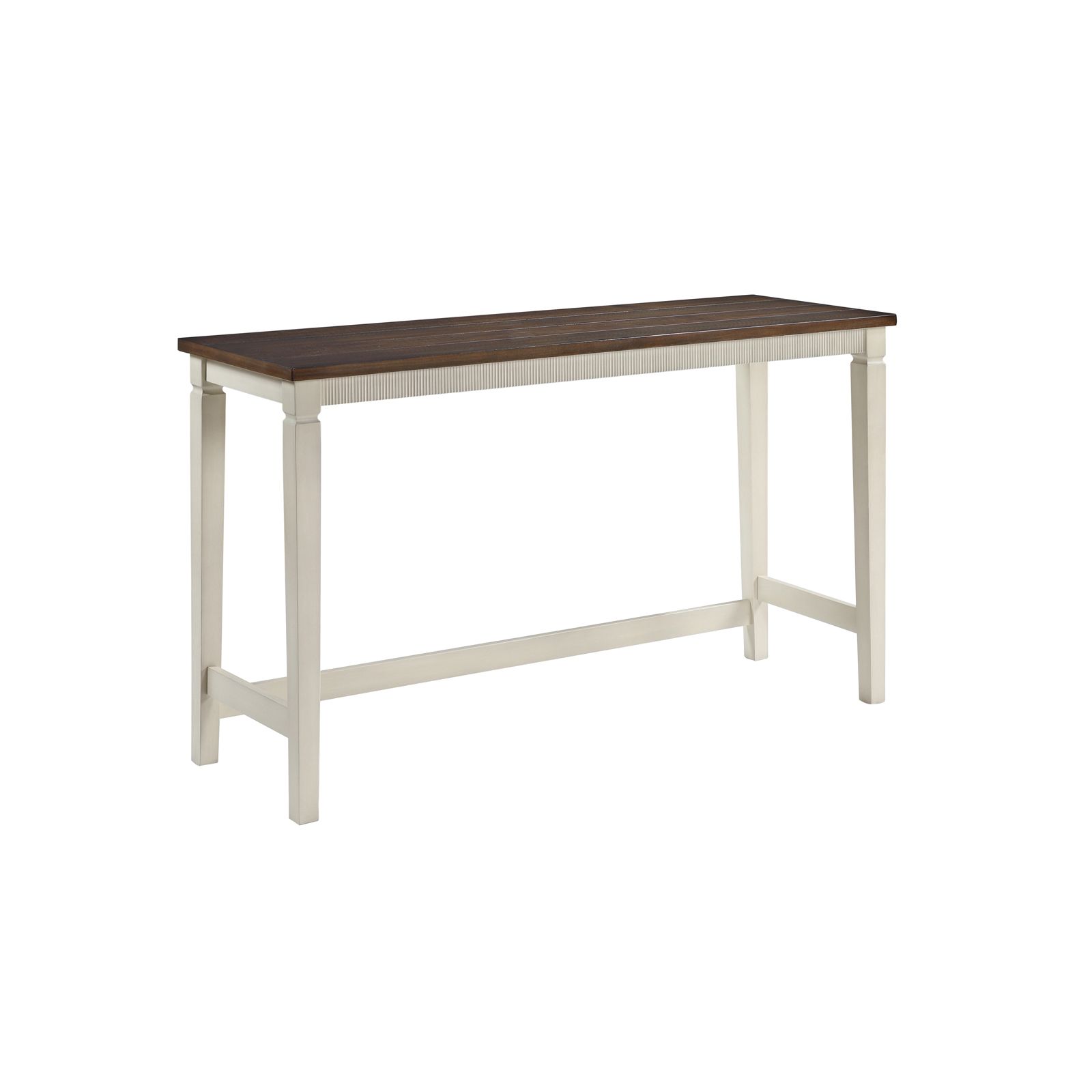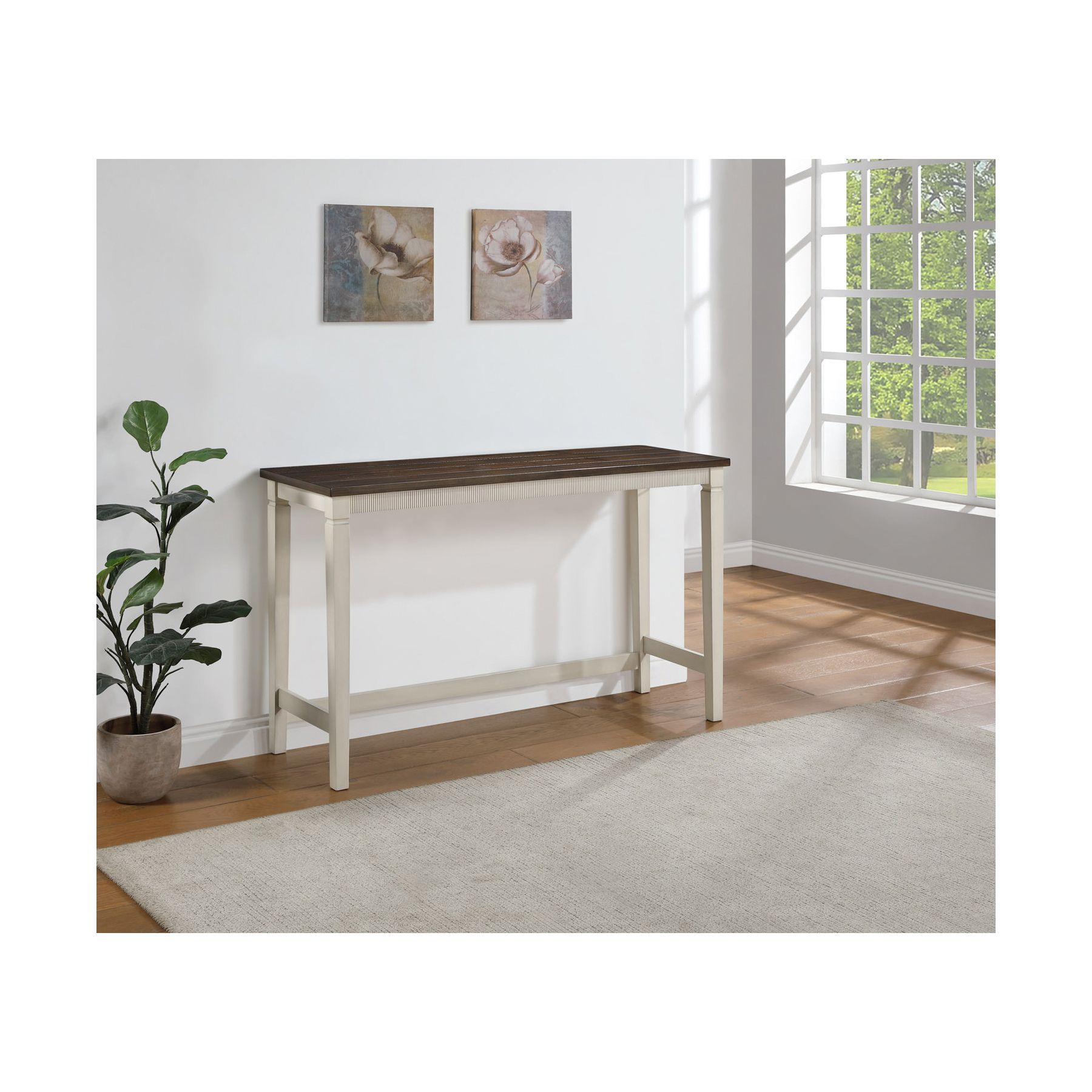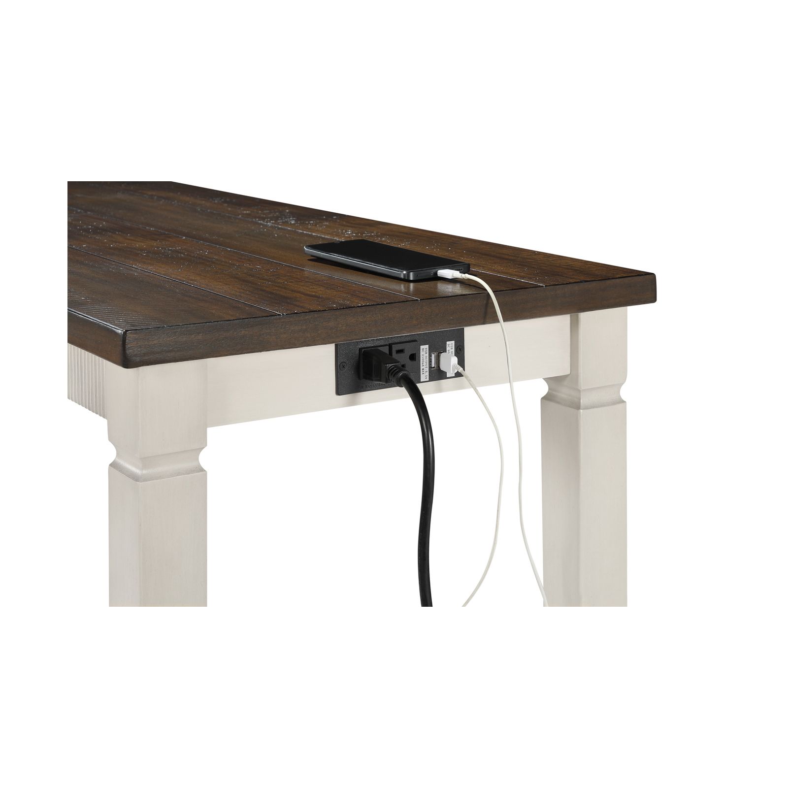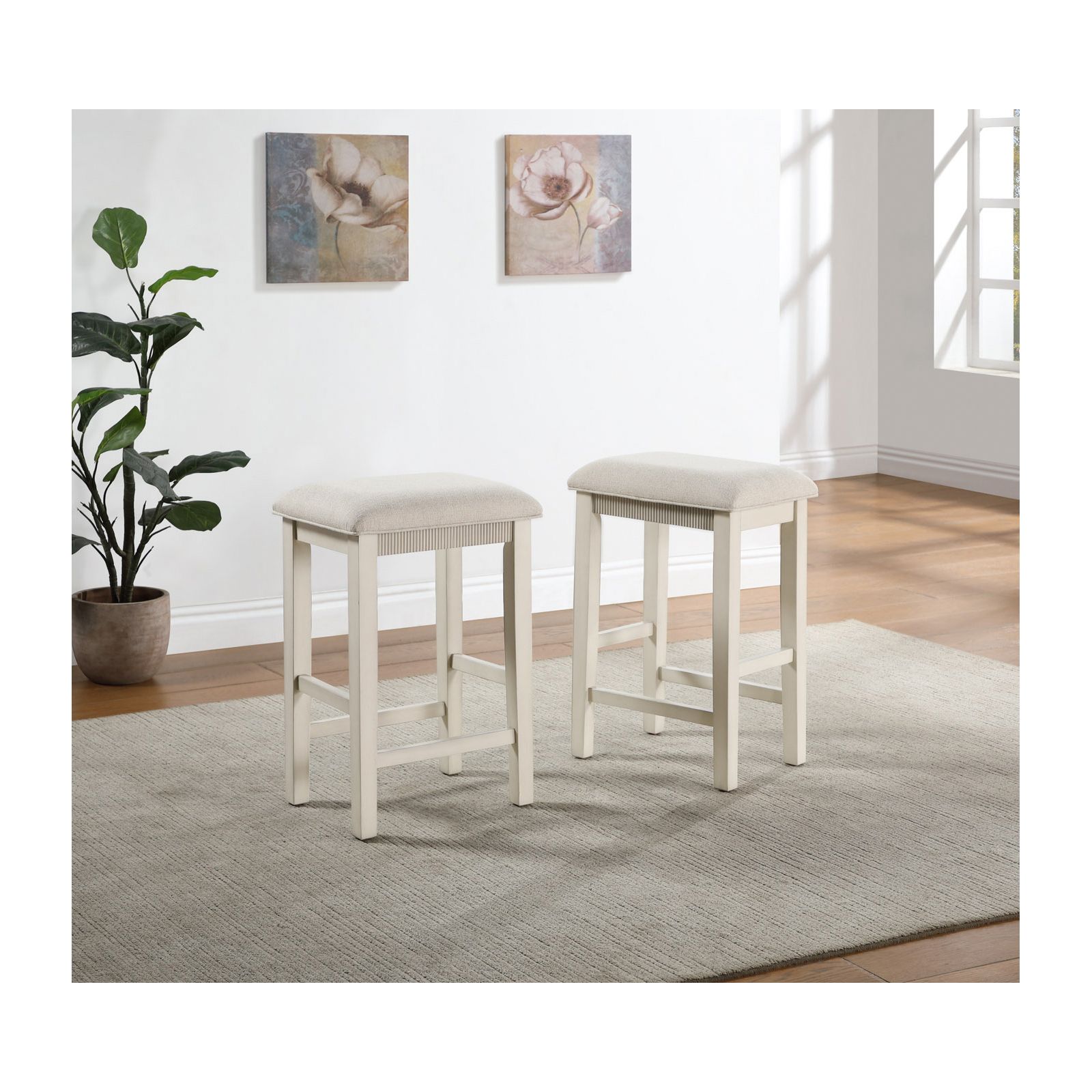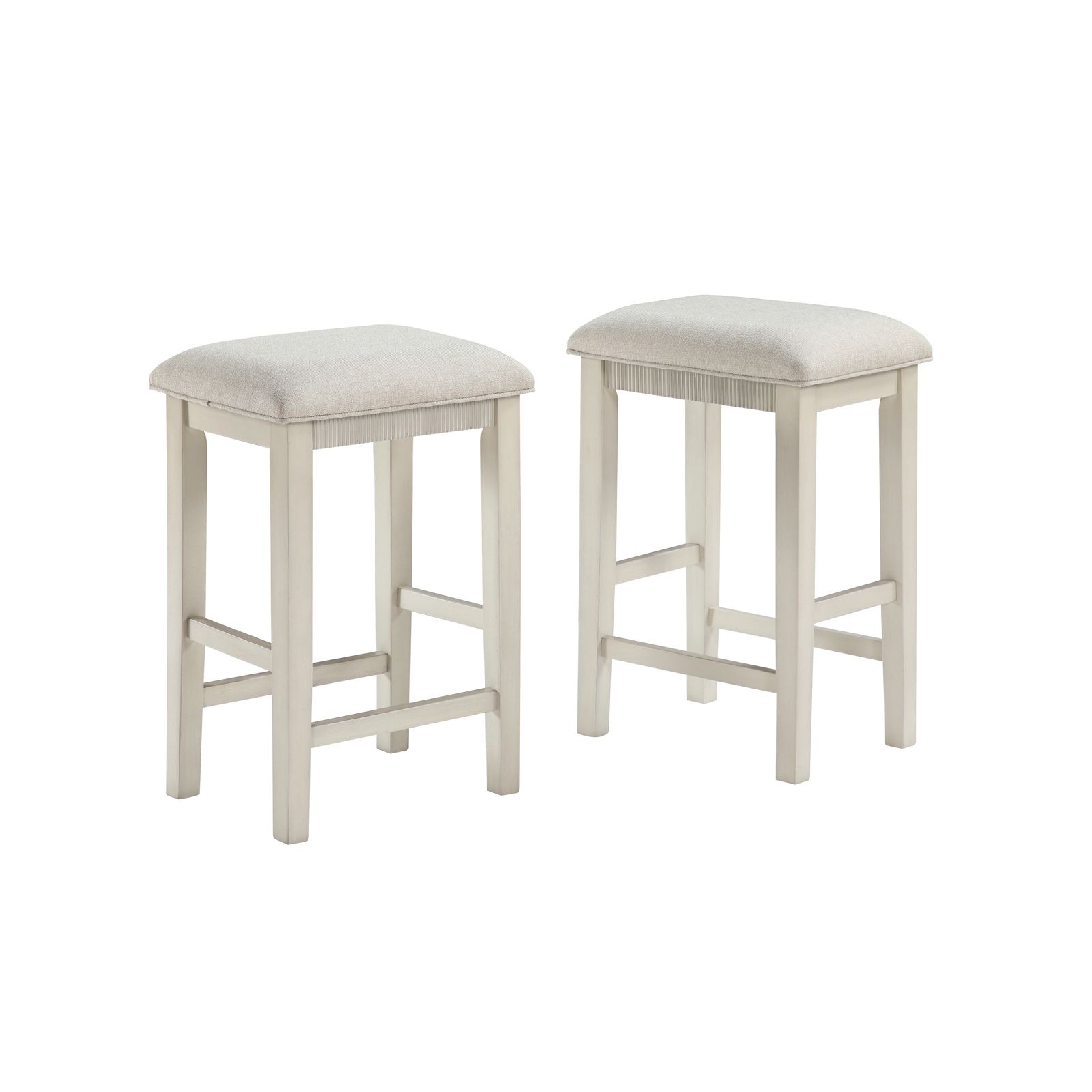 This 4-pc. Sara counter height dining set immediately creates a classic home bar or laptop station. It includes one counter-height table and three matching bar stools. Each is crafted from solid and engineered wood in a clean white finish that goes with nearly any color scheme. The table's design features a box apron for a timeless look. The three stools have upholstered seats and built-in footrests. Backless construction of the stools means they fit neatly underneath the counter table, saving you floor space. And to make it even better there is a USB charging port for added convenience.