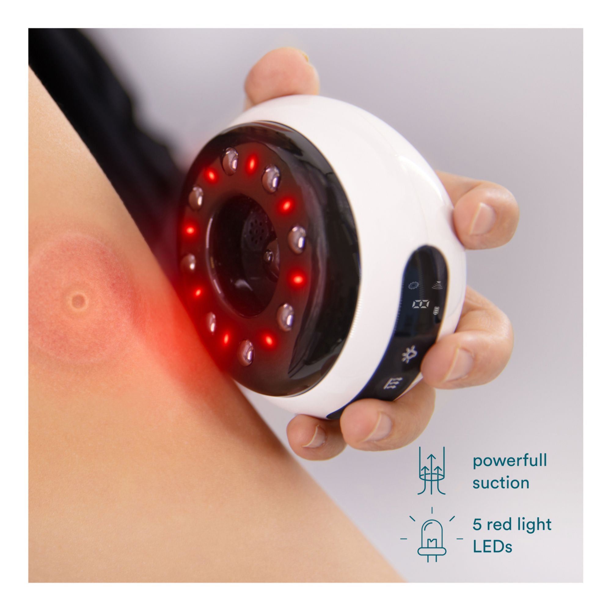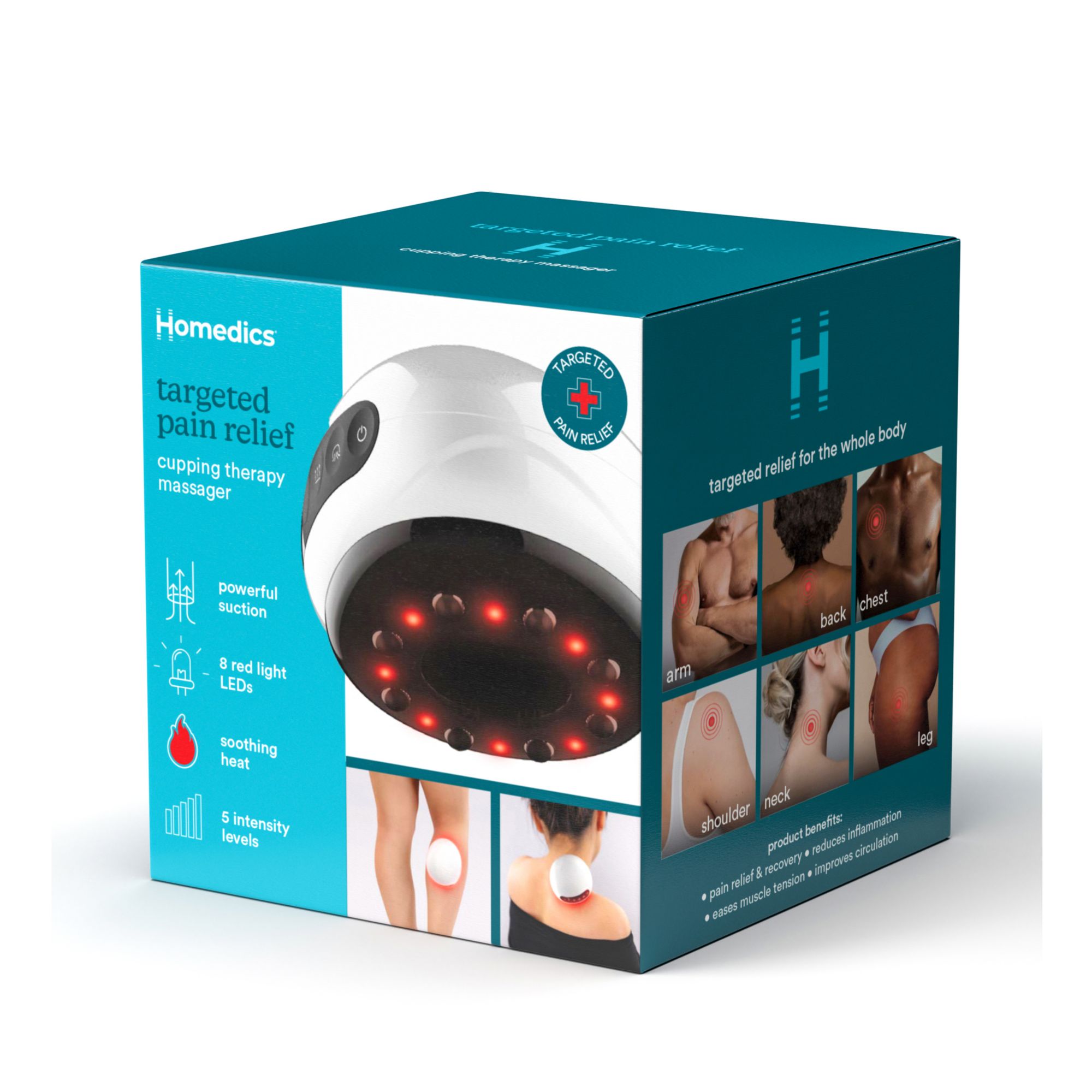 The Homedics Cupping Therapy Massager brings the pain-relieving benefits of cupping therapy out of an appointment to the comfort of your own home (or anywhere you go). Experience targeted pain relief for the whole body, reducing inflammation, easing muscle tension, and improving circulation with this revolutionary massager. Powerful suction combines with eight powerful red light LEDs to massage the pain away. Soothing heat and five intensity levels let you create your custom relief.