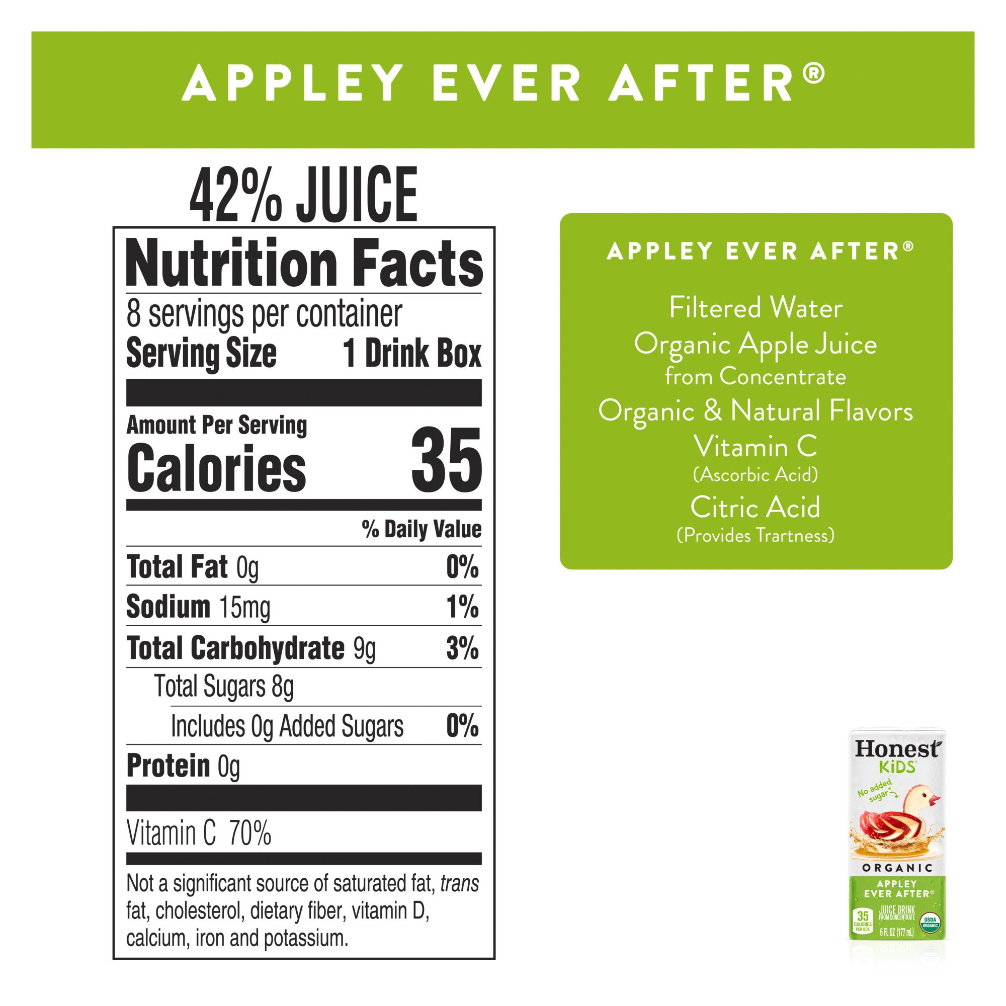 Ingredients: Super Fruit Punch Ingredients: Filtered Water, Organic Apple Juice From Concentrate, Organic White Grape Juice From Concentrate, Organic Strawberry Juice From Concentrate, Organic Cranberry Juice From Concentrate, Organic Natural Flavors, Vitamin C (Ascorbic Acid), Citric Acid (Provides Tartness). Berry Good Lemonade Ingredients: Filtered Water, Organic Apple Juice From Concentrate, Organic White Grape Juice From Concentrate, Organic Lemon Juice From Concentrate, Organic Blueberry Juice From Concentrate, Organic Cranberry Juice From Concentrate, Organic Natural Flavors, Vitamin C (Ascorbic Acid), Citric Acid (Provides Tartness). Appley Ever After Ingredients: Filtered Water, Organic Apple Juice From Concentrate, Organic Natural Flavors, Vitamin C (Ascorbic Acid), Citric Acid (Provides Tartness). Goodness Grapeness Ingredients: Filtered Water, Organic White Grape Juice From Concentrate, Organic Concord Grape Juice From Concentrate, Organic Natural Flavors, Vitamin C (Ascorbic Acid), Tartaric Acid.