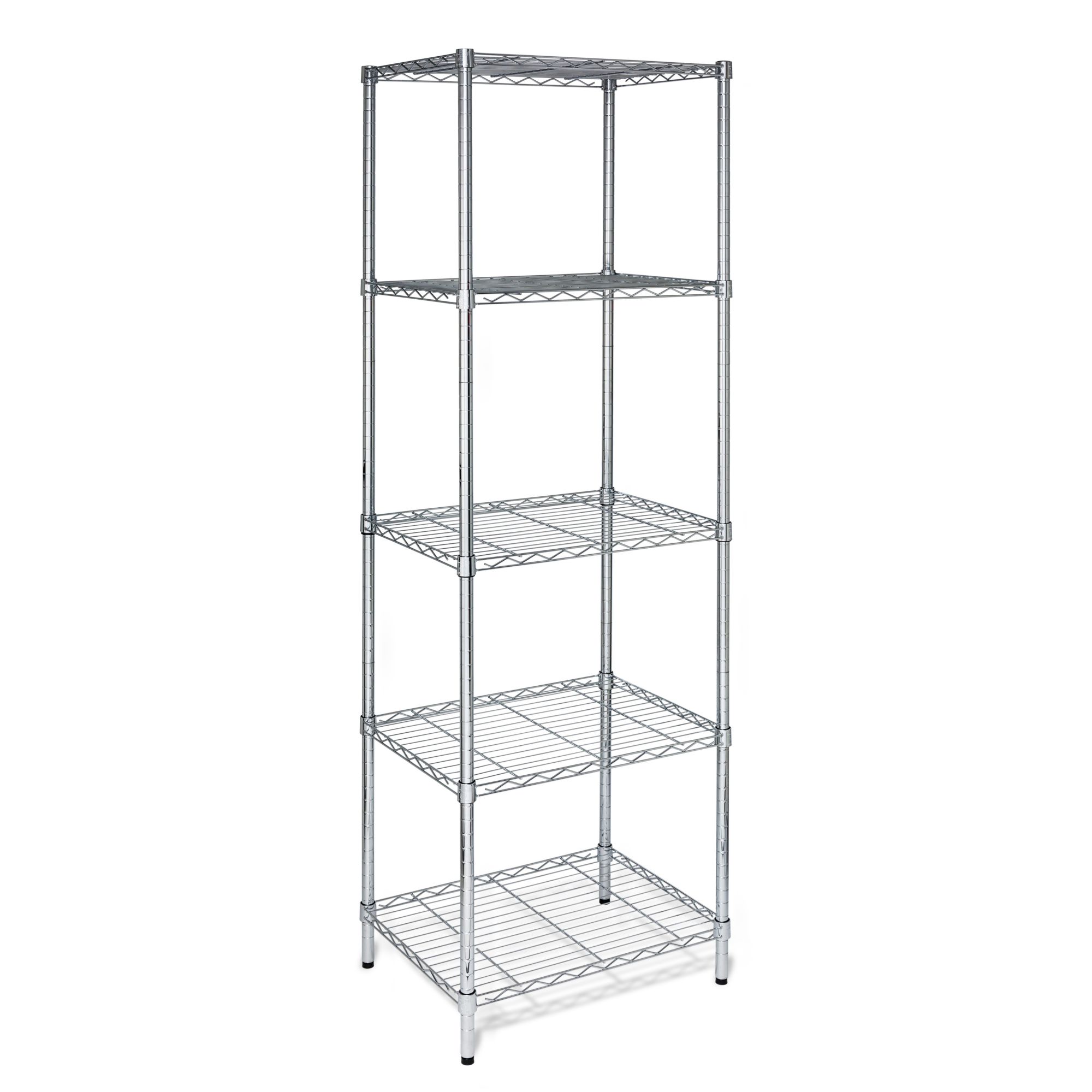5-tier shelf means maximum storage opportunities in any room 250 lbs. capacity per shelf Adjustable shelf heights provide configuration versatility 72” steel frame provides durability Brings kitchen, garage or closet storage ideas to life NSF-certified and approved for commercial-grade kitchen use Easy no-tool assembly Includes 5 shelves, 4 legs Warranty: lifetime limited
