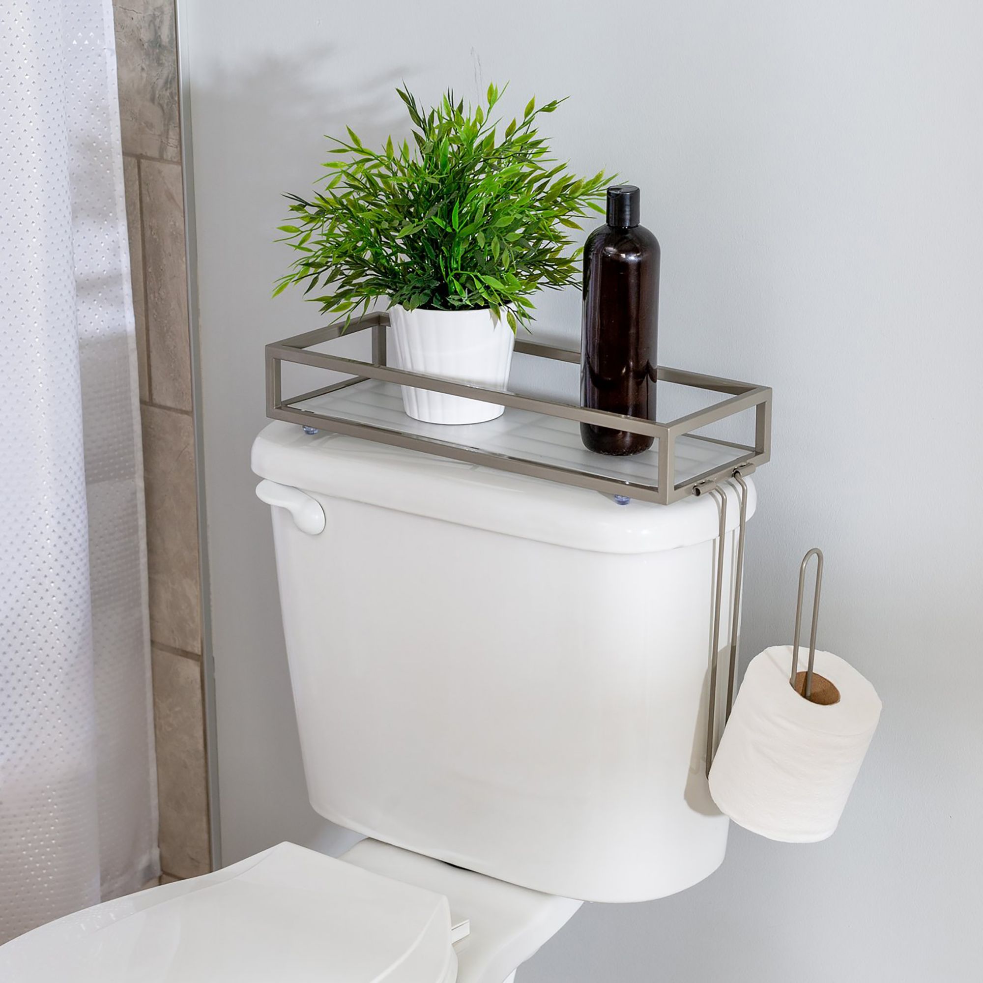 The Honey-Can-Do Toilet Tank Storage Tray is ideal for small bathroom spaces where you can utilize this metal storage basket to fit on top of standard size toilet tanks. It acts as over the toilet storage, and provides an extra toilet paper holder. This storage tray's finish and angular design will also have it fitting in seamlessly in your bathroom while keeping your reserves high.