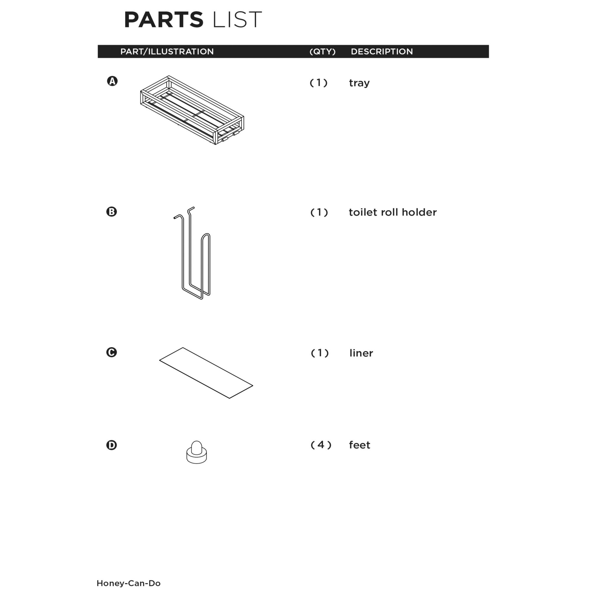 Utilizes unused storage space by fitting on top of standard toilet tanks Includes toilet paper reserve, fitting two full rolls Designed in soft, neutral finish with modern angular frame Durable steel material for long-lasting use Dimensions: 21.75"L x 6"W x 12.5"H Gray Includes toilet tank storage tray