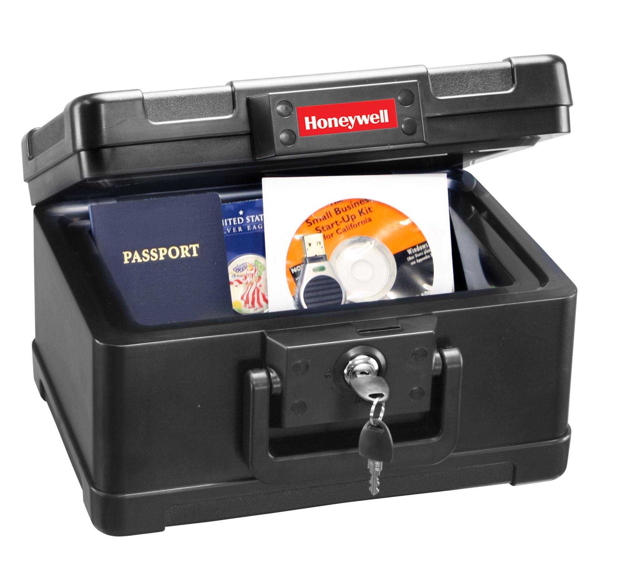 The Honeywell water-resistant fire chest is water resistant to safely store important documents and digital media will be protected from fire and flood with this sturdy safe with handle