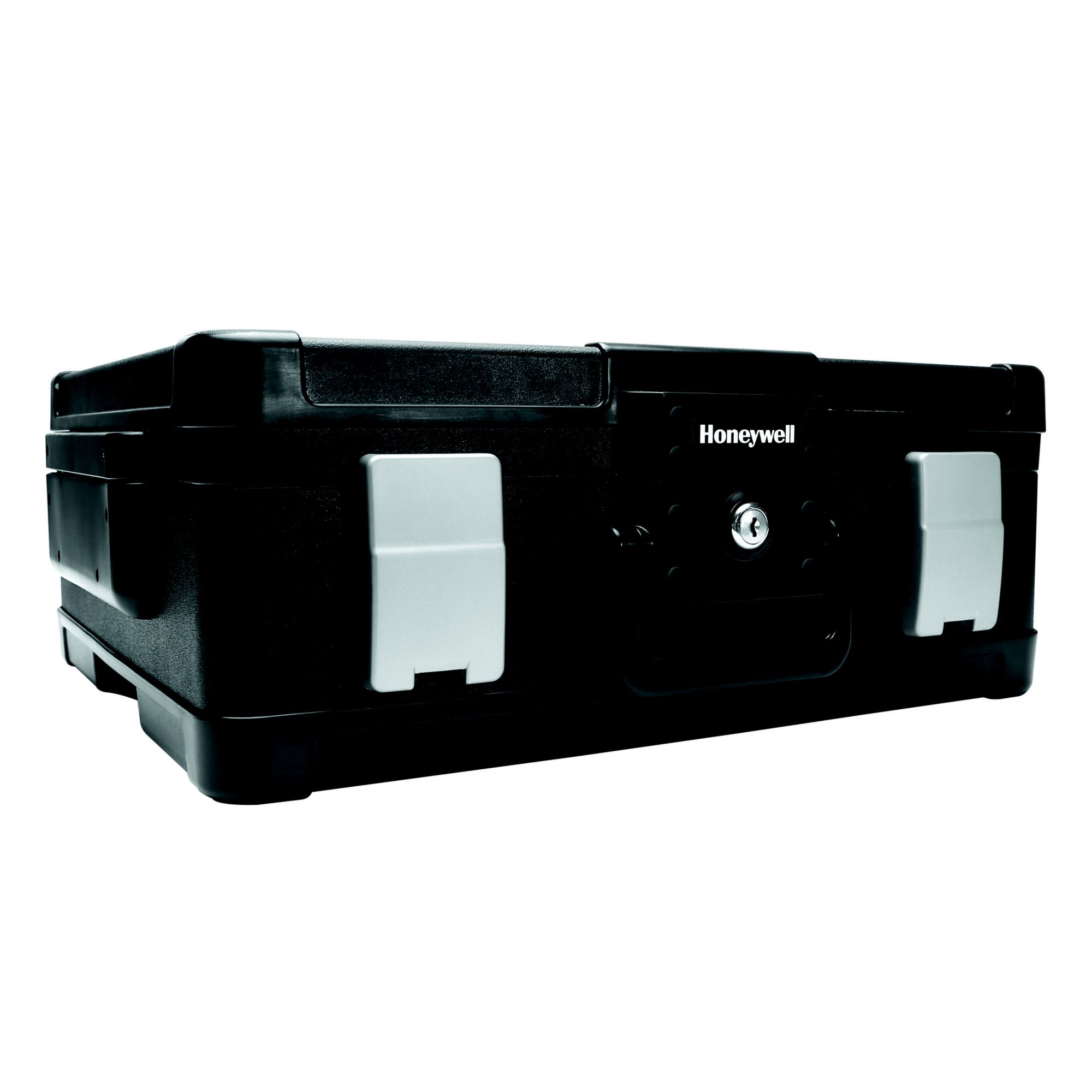 The Honeywell .4 cu. ft. Lightweight Fire and Waterproof Chest uses lightweight technology while still providing unprecedented security from water and fire up to 1700° F for one hour. It also has a waterproof seal and two side latches guards against emergency sprinklers, floods and various other forms of water damage. These features make it an ideal candidate for stashing all of your personal documents, digital media and various other valuables. The box is large enough to store your legal sized papers flat as well as A4 and letter sizes. For security measures, this waterproof chest utilizes a key lock system. A carry handle is also included and adds even more versatility to an already flexible product. The Honeywell Safe product line provides safety and security for your essential documents and most valuable possessions while affording you the peace of mind that comes from being prepared in the event of a disaster, fire, or an invasion of your home or office.