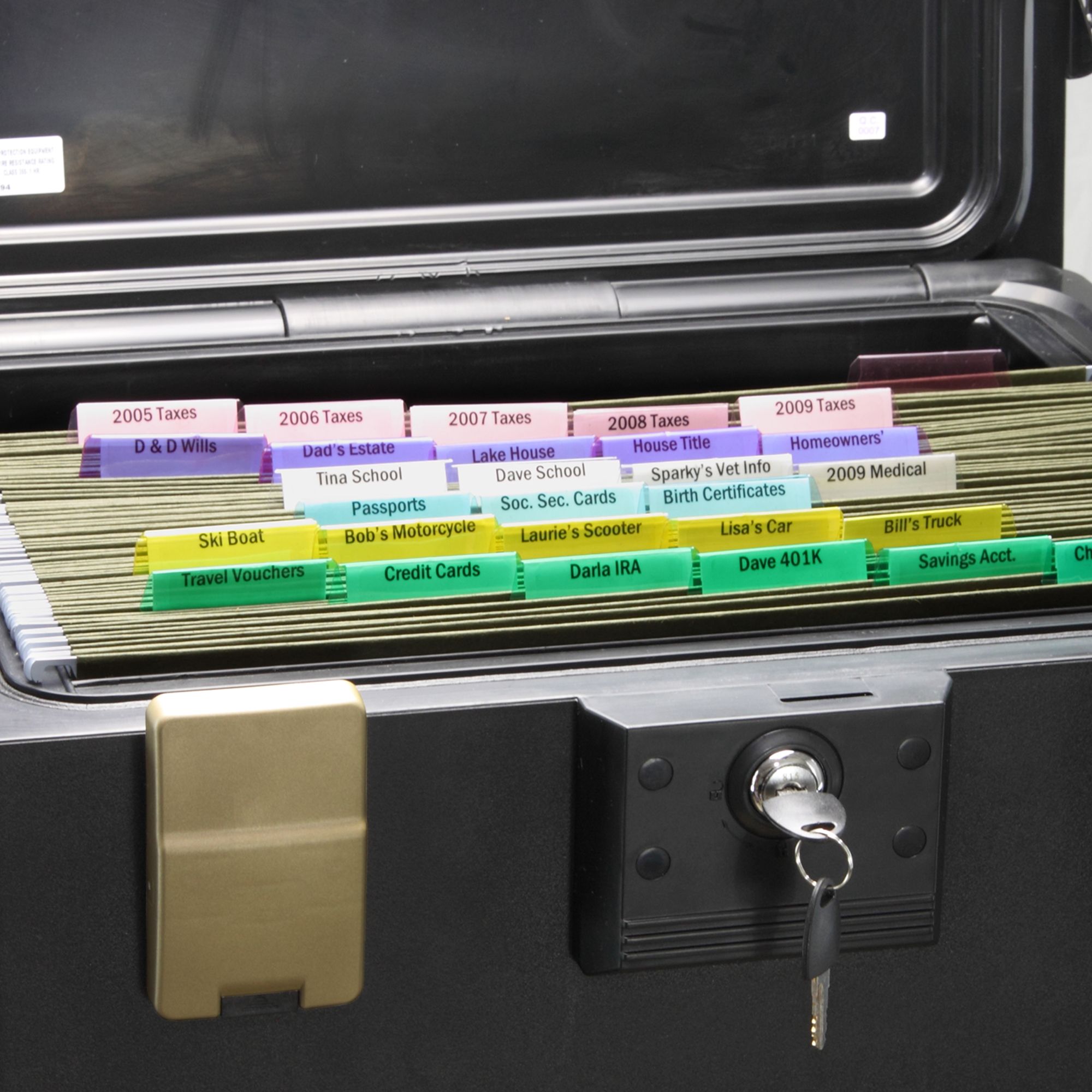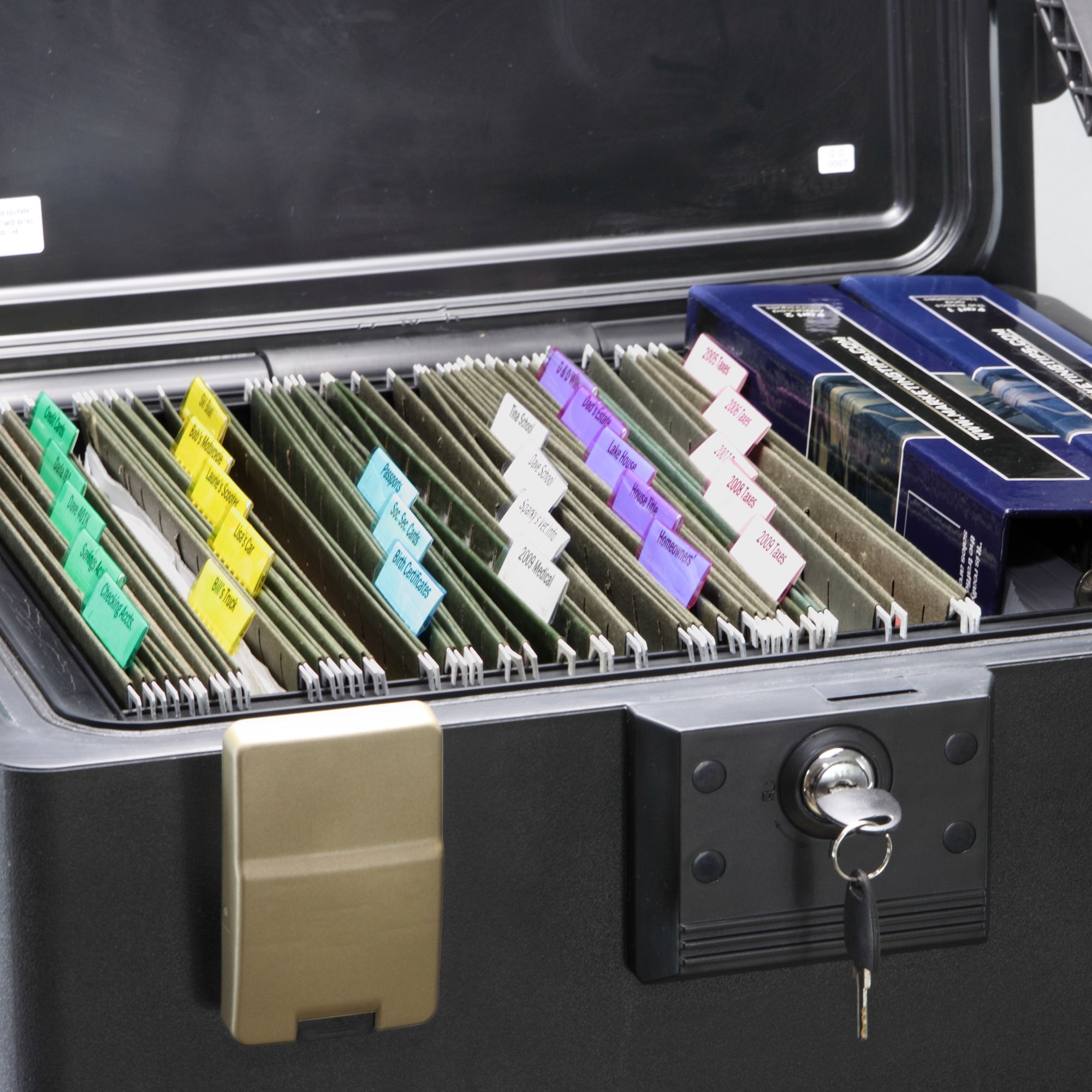 1 hour UL fire rating protects your valuables Made from molded ABS plastic with load-bearing safety hinges for the ultimate in durability Key lock and 2-sided compression latches prevent unauthorized access Waterproof to protect valuables in the event of fire or flood Holds letter-size, A4 and legal-size hanging folders Provides a safe place for electronic media, including USB flash drives, CDs and more Lifetime after-fire guarantee Interior dimensions: 11 9/10"D x 15 3/20"W x 10 3/20"H Warranty: 7 years limited