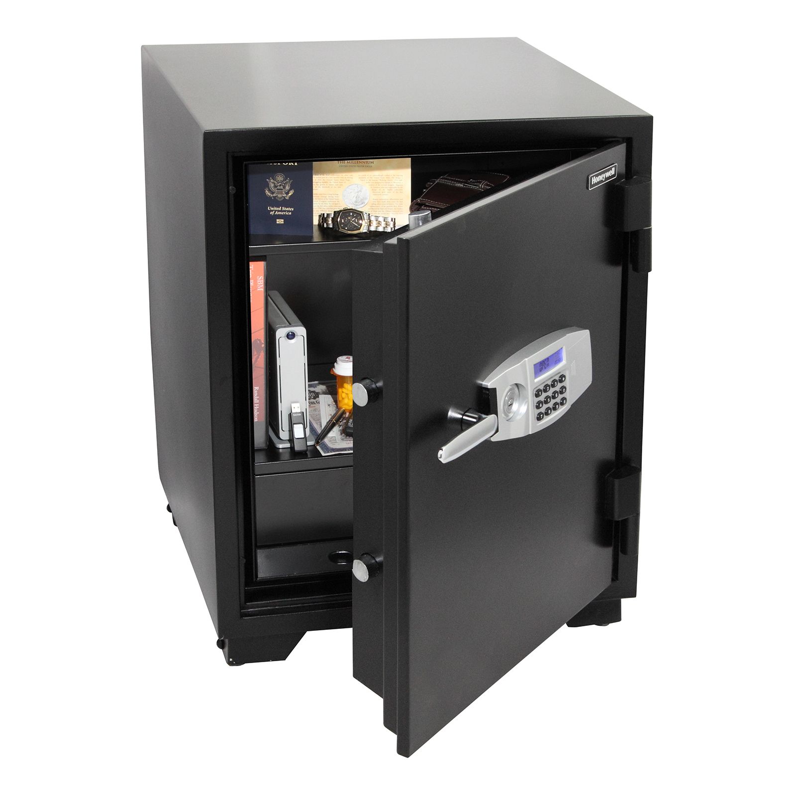 The Honeywell Water- and Fire-Resistant Safe features a storage capacity of 3.44 cu. ft. Secure unprecedented levels of peace of mind with this chest's ability to withstand a fire of up to 1,700° for one hour. A water-resistant door has also been implemented to combat leaks, spills and various other forms of water damage. Coated in steel, this safe utilizes a programmable digital keypad that's entirely intuitive and features no shortage of options. Bonuses include a programmable calendar, clock, user history log, advanced dual user lock and emergency override key access features. An easy-to-hear alarm has also been implemented and will sound off when the safe is titled or moved. Double steel wall construction and protective rubber feet make this a highly efficient storage solution.
