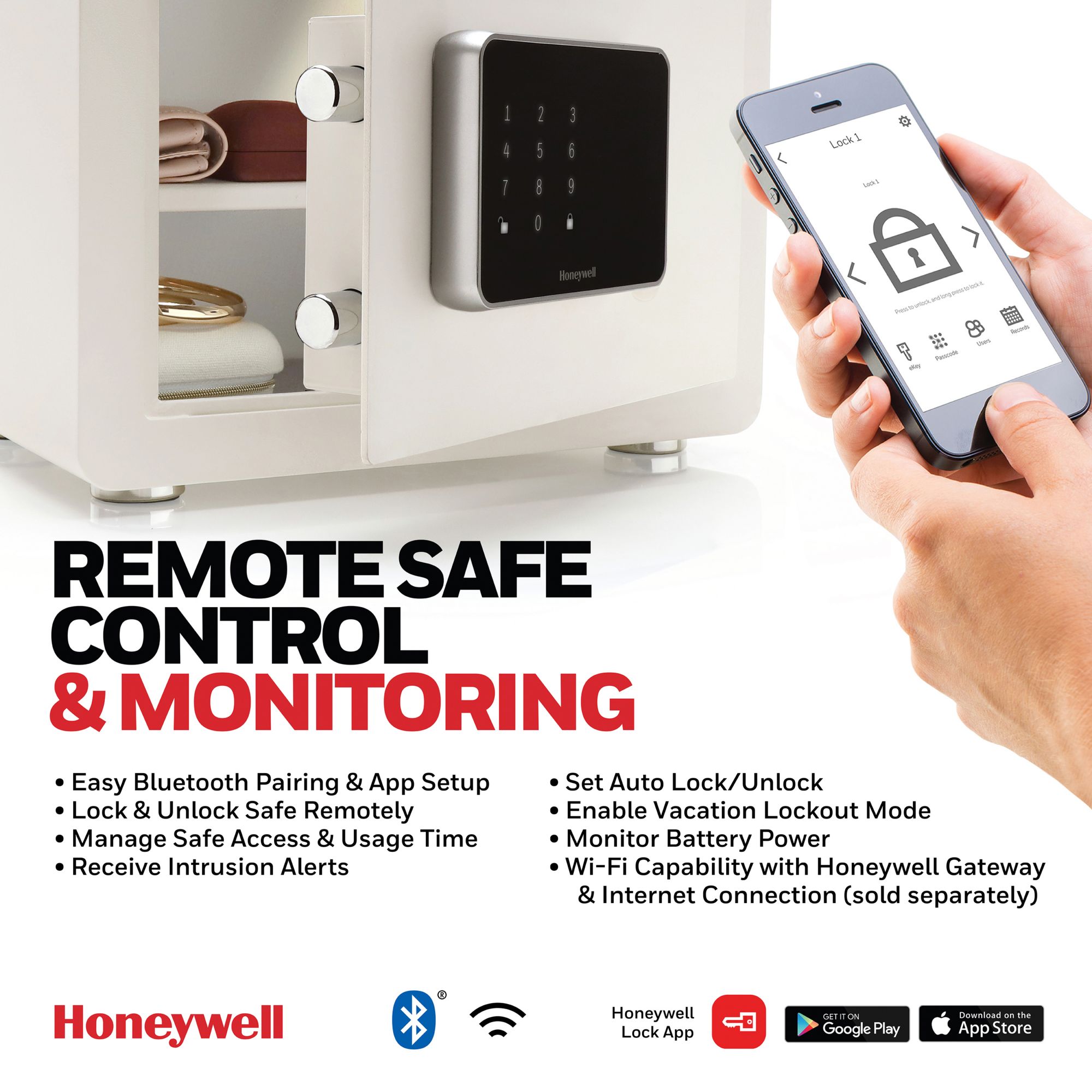 Honeywell Bluetooth Jewelry Security Safe, Medium 0.60 cu. ft. Ivory
