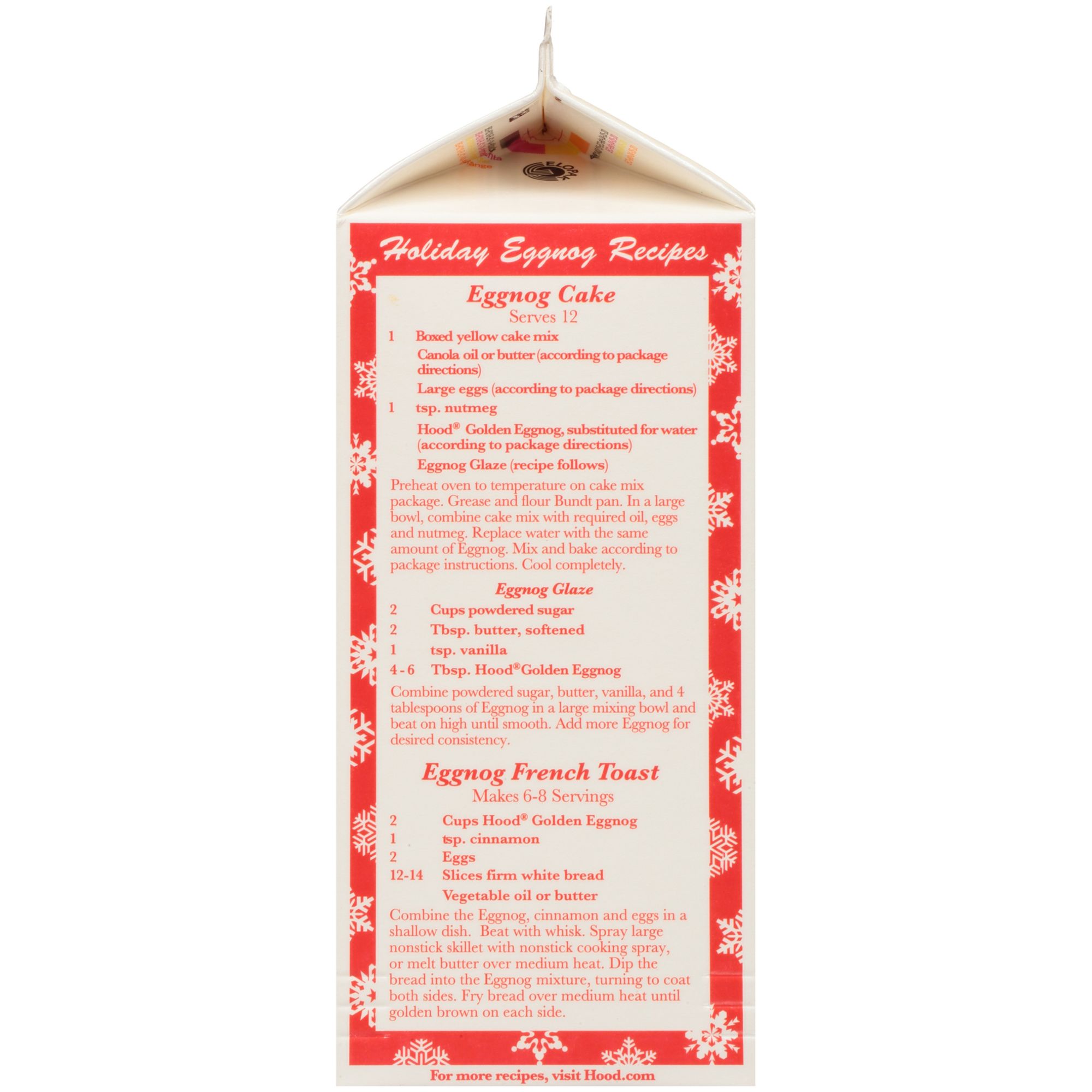 Hood Golden Eggnog's blend of extra creamy milk, sugared yolks and spices are delicious, whether you drink it straight from the glass or use it in your favorite recipes for family and friends. The Hood Golden Egg Nog recipe has been a secret for more than 50 years. The good times are plain as day.