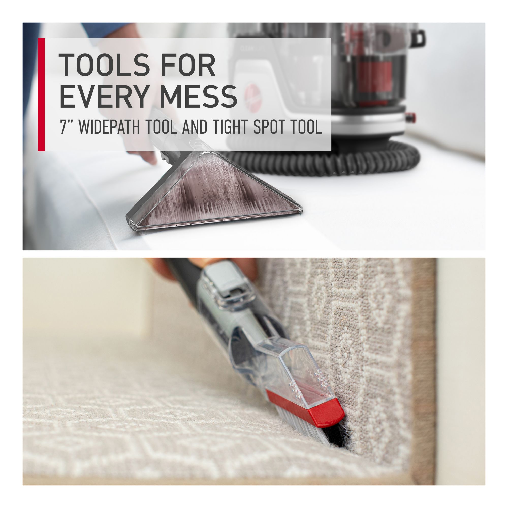 The CleanSlate Pet Carpet and Upholstery Spot Cleaner combines powerful suction, versatile tools, and the performance of the Oxy formula to permanently remove stains and messes. With the 7" WidePath Tool for large areas, like stairs, and the TightSpot Tool for crevices and tough-to-reach areas, you'll have the flexibility you need to clean messes of any size. Quickly remove spills and stains on the go thanks to a light, portable design, and a long cord, allowing easy movement between areas. With the Hose Rinse tool, your machine stays clean and ready for the next mess.