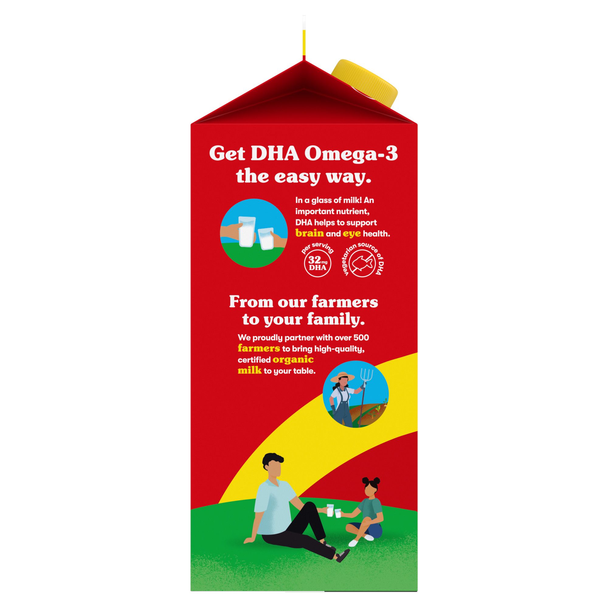 Delicious and DHA supports brain health: One 64 fl. oz. carton of Horizon Organic DHA Omega-3 Whole Milk offers the rich, creamy taste of organic milk with 32mg of DHA omega-3 from a vegetarian source per serving
