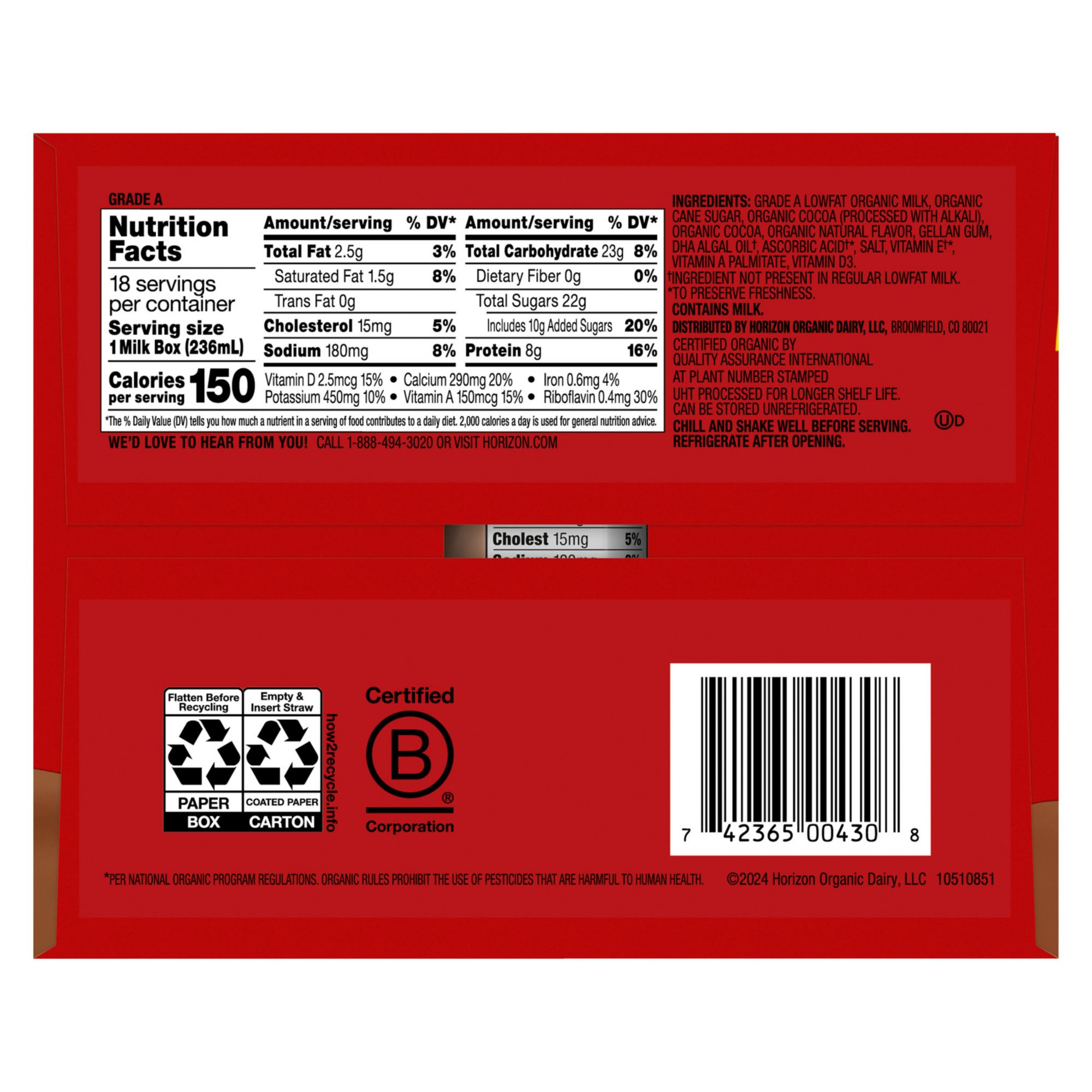 Horizon Organic Shelf-Stable 1% Low Fat Milk Boxes with DHA Omega-3, Chocolate, 18 pk./8 fl. oz.