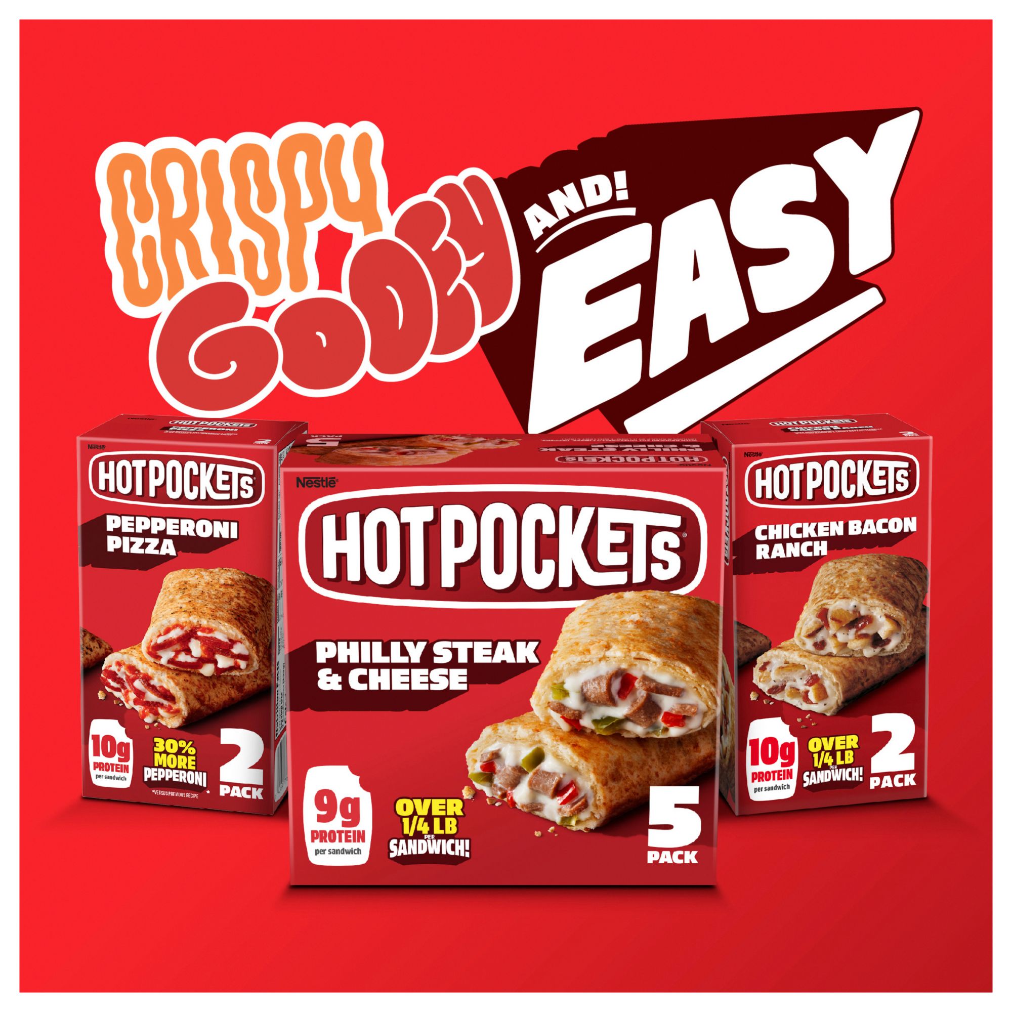 (1) Hot Pockets Pepperoni Pizza OR Hickory Ham & Cheddar, 20 pk., OR Jack's Pull-Apart Cheeseburger Pizza Sticks, 24 ct.