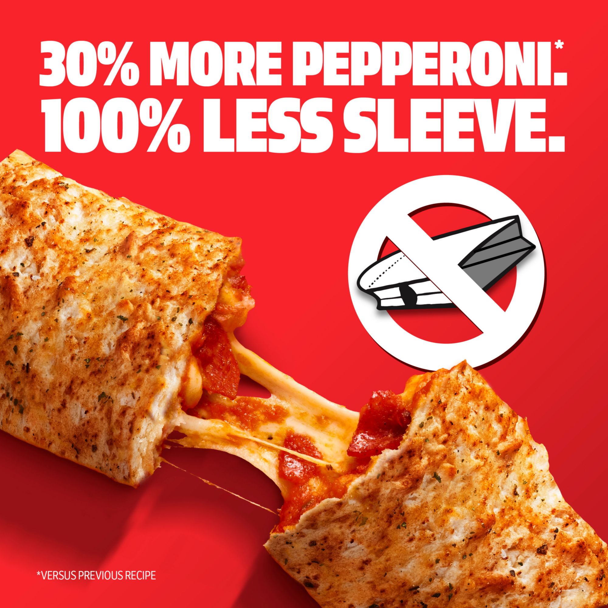 Pepperoni, 100% real reduced fat mozzarella cheese, and delicious pizza sauce filling