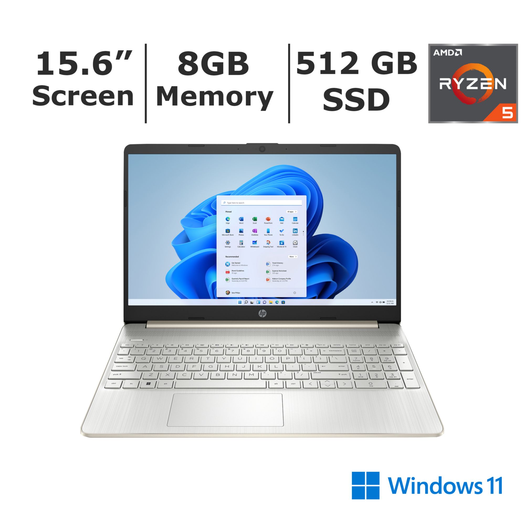 HP 15.6" Full HD Laptop, AMD Ryzen 5 Processor, 8GB Memory, 512GB SSD, AMD Radeon Graphics