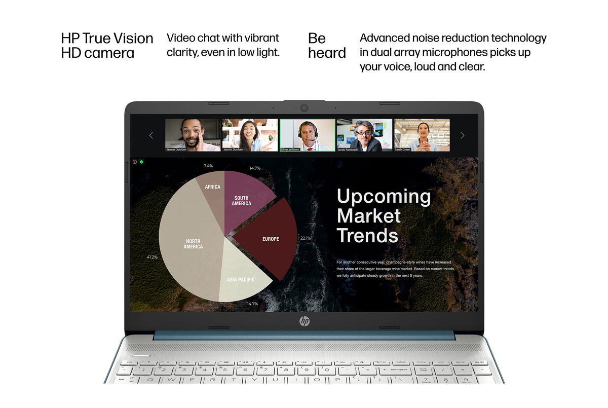 HP 15-DY5885 Core i5-1235U 256GB SSD 8GB 15.6" (1920x1080) WIN11 SPRUCE BLUE is designed to keep you productive and entertained from anywhere. The HP 15.6" Laptop PC combines long-lasting battery life with a thin and portable, micro-edge bezel design. With a thin and light design, take this PC anywhere. Do more with a micro-edge FHD display and enjoy vivid and flicker-free images. Tackle your busiest days with the performance of a 12th-generation Intel Core processor. Save more of what you love with abundant storage for all your photos, videos, and documents. With a long battery life and fast-charge technology, this laptop lets you work, watch, and stay connected all day. Integrated precision touchpad with multi-touch support speeds up both navigation and productivity. The HP 15.6" Laptop is EPEAT Silver registered and ENERGY STAR certified. And it contains sustainable, post-consumer recycled plastics.