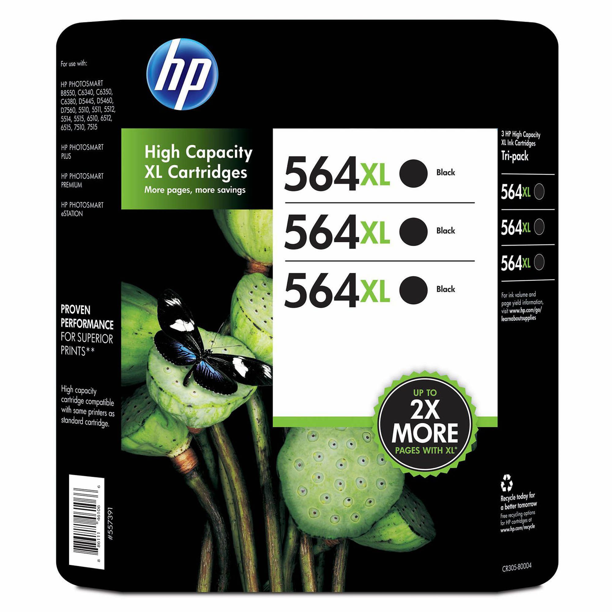 - Includes 3 HP 564XL high-yield, black original ink cartridges