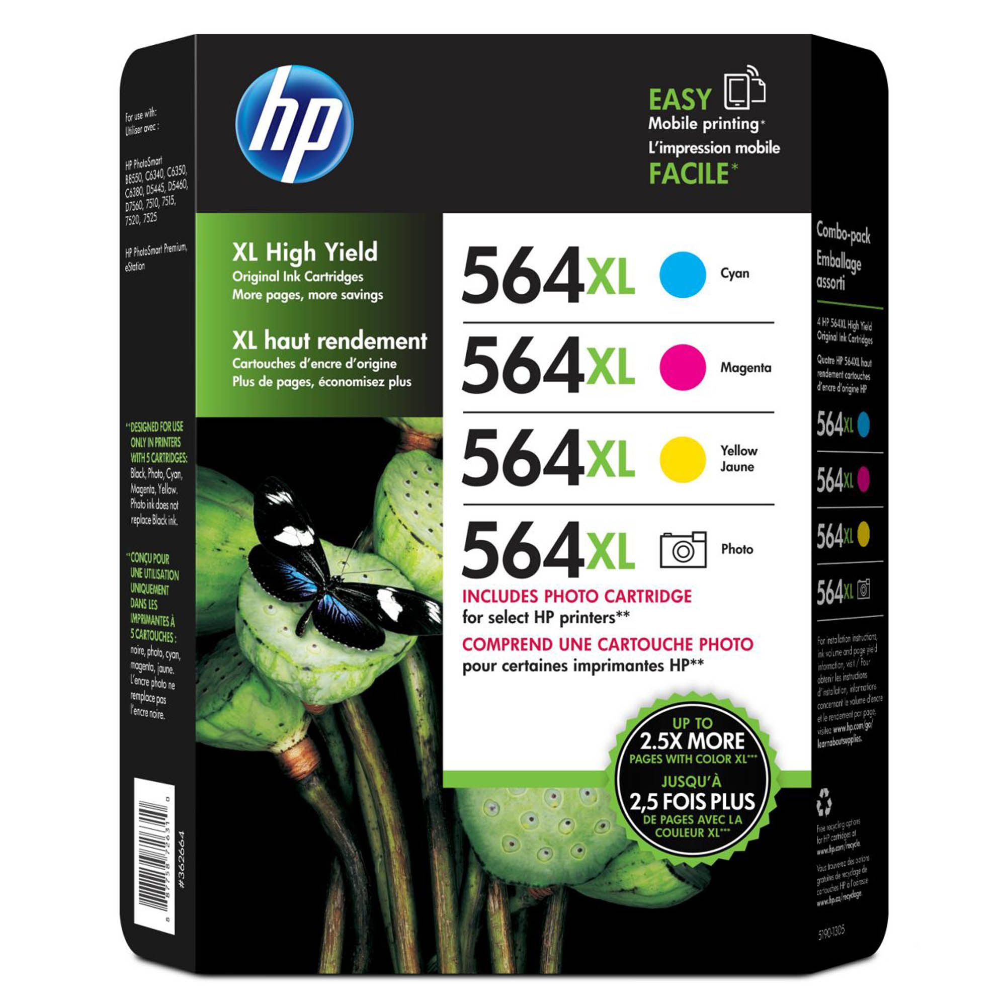 *HP 564XL Cyan Ink Cartridge (CB323W) yields up to 750 standard pages, HP 564XL Magenta Ink Cartridge (CB324W) yields up to 750 standard pages, HP 564XL Yellow Ink Cartridge (CB325W) yields up to 750 standard pages