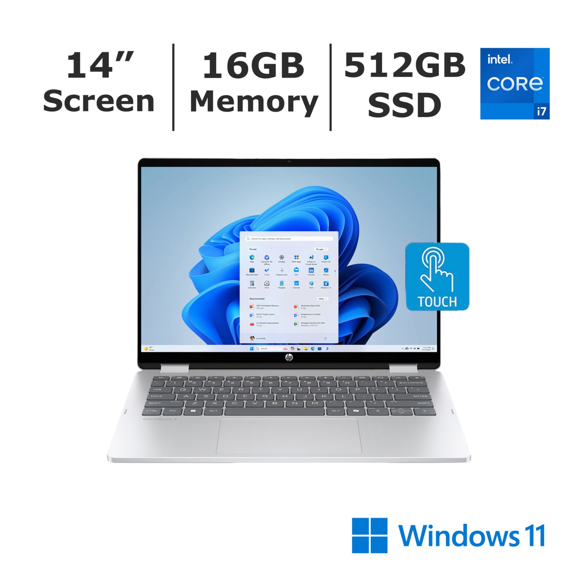 HP OmniBook 5 Flip 14" 2-in-1 Touchscreen Notebook, Intel Core 7 Processor, 16GB Memory, 512GB SSD