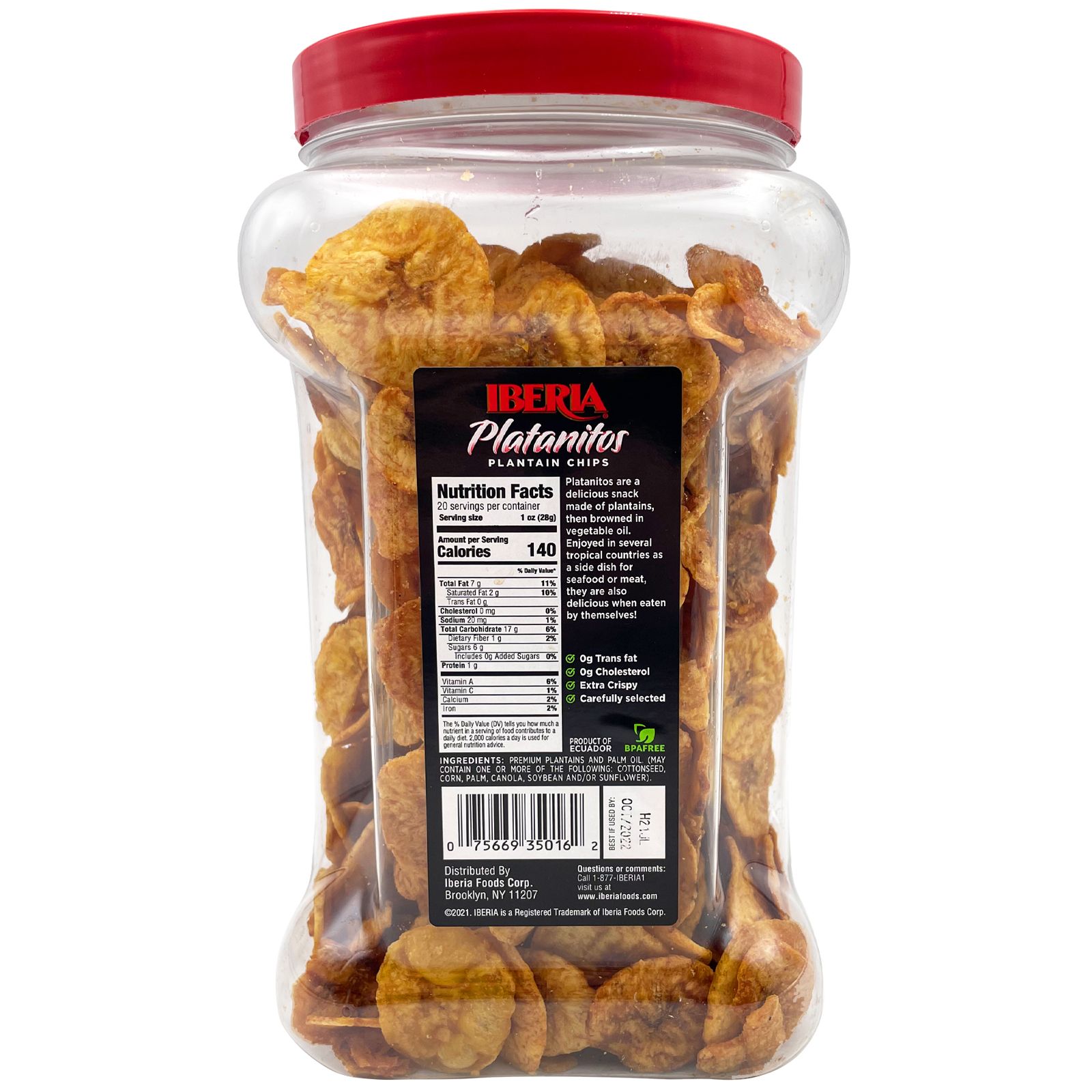 Taste the sweet, ripe, delicious plantains combined with the crunchiness of chips, Iberia Maduritos are the tastiest snacks ever. Iberia Maduritos as they are known in Spanish are the best alternative to potato chips, because they are 100% natural with no preservatives and are low in salt. These cholesterol-free plantain chips are crunchy, healthy alternative to traditional snacks. Iberia sweet plantain chips taste just like regular chips; you will not believe they are made with ripe plantains. Go ahead and open the jar, let their irresistible sweetness hook you from the first bite. Enjoy Iberia Maduritos right out of the jar, or along a sandwich. Or you can crush them to make an extra crunchy, low salt breading for fish, chicken etc. You can also top ice cream, yogurt and even mashed potatoes with Iberia Maduritos. Add to granola chopped in big chunks or finely crush them to use them as flour substitute to make muffins or pancakes and desserts! There are innumerable possibilities with Iberia Sweet Plantain Chips
