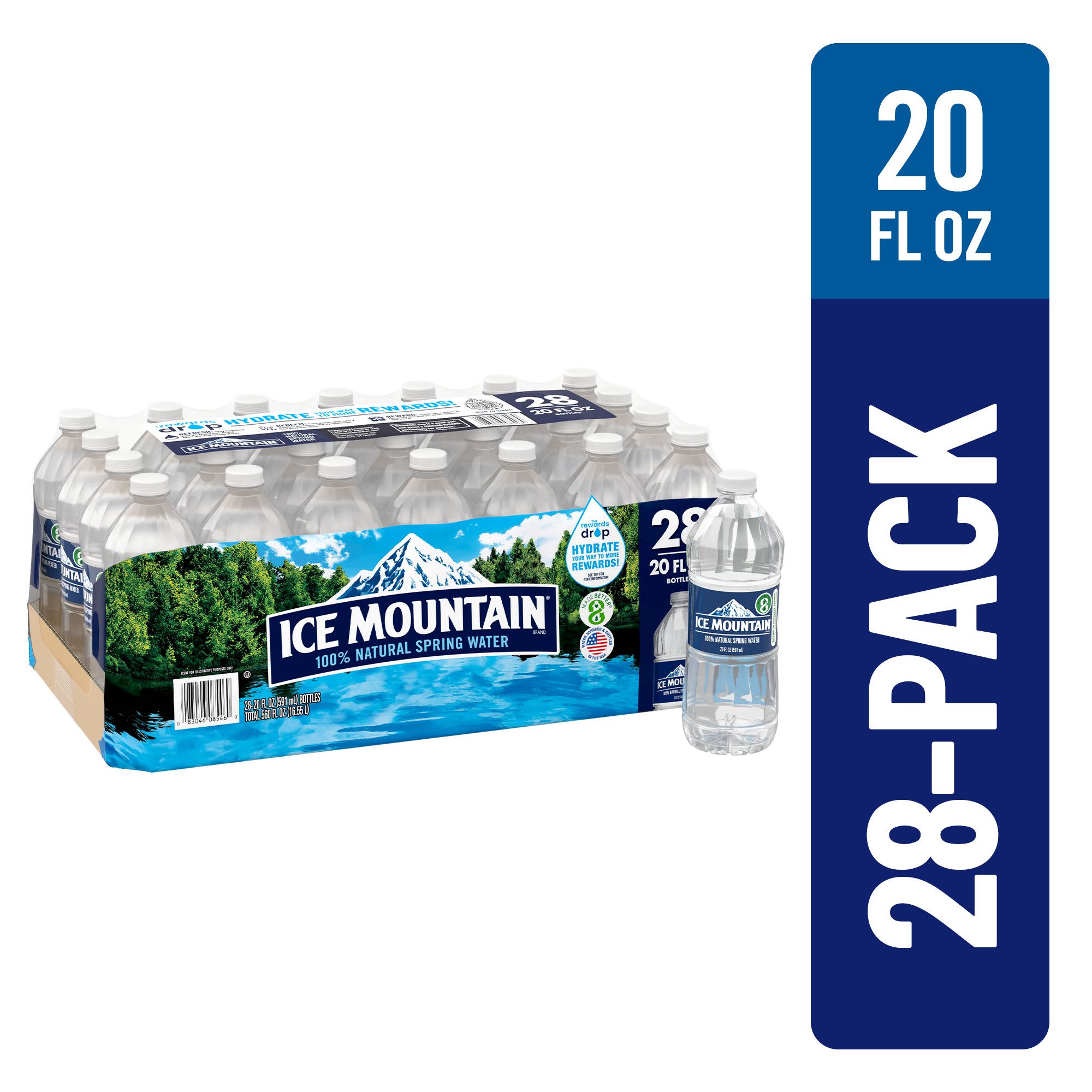 Get back to nature with Ice Mountain brand 100% natural spring water. Carefully sourced from natural springs located in the great state of Michigan, it contains naturally occurring electrolytes for a crisp, clean taste you'll love. And with a better bottle made with 100% recycled plastic* and 100% recyclable, you know that you're not just getting the best that nature has to offer, you're doing your best to help conserve it, too. So grab a pack and get ready for whatever fuels you. Ice Mountain water is available in a variety of sizes, so you can easily stay hydrated no matter where you are. From your gym bag to your hiking pack, on the go or at home, you can pick up the perfect size for wherever your life takes you. Stock the fridge so your family always has crisp, refreshing hydration on hand. Plus, the more you drink, the more you can earn with the rewards drop. Get points with every purchase toward event tickets, merchandise and more see packaging for details. It's easy to see why Midwesterners have been enjoying Ice Mountain brand 100% natural spring water for years.