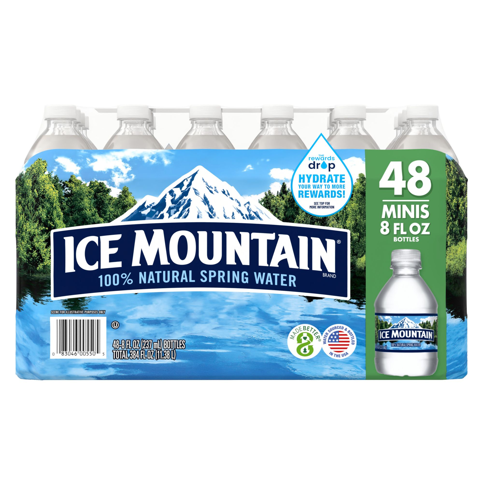 Get back to nature with Ice Mountain brand 100% natural spring water. Carefully sourced from natural springs located in the great state of Michigan, it contains naturally occurring electrolytes for a crisp, clean taste you'll love. And with a better bottle made with 100% recycled plastic* and 100% recyclable, you know that you're not just getting the best that nature has to offer, you're doing your best to help conserve it, too. So grab a pack and get ready for whatever fuels you. Ice Mountain water is available in a variety of sizes, so you can easily stay hydrated no matter where you are. From your gym bag to your hiking pack, on the go or at home, you can pick up the perfect size for wherever your life takes you. Stock the fridge so your family always has crisp, refreshing hydration on hand. Plus, the more you drink, the more you can earn with the rewards drop. Get points with every purchase toward event tickets, merchandise and more see packaging for details. It's easy to see why Midwesterners have been enjoying Ice Mountain brand 100% natural spring water for years.