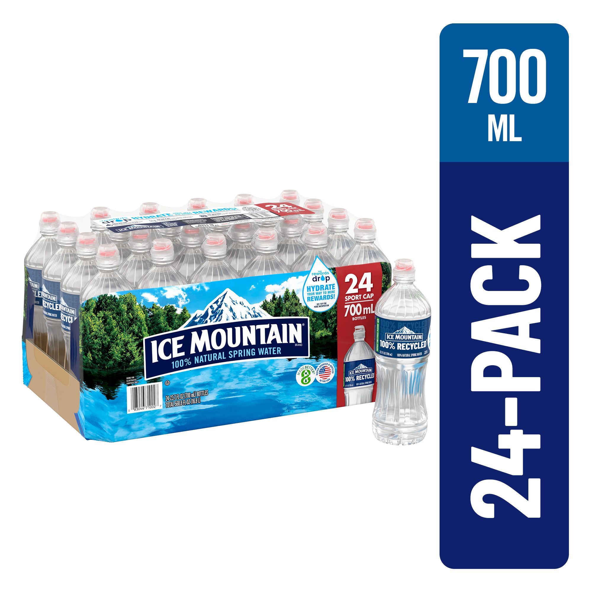 Get back to nature with Ice Mountain brand 100% natural spring water. Carefully sourced from natural springs located in the great state of Michigan, it contains naturally occurring electrolytes for a crisp, clean taste you'll love. And with a better bottle made with 100% recycled plastic* and 100% recyclable, you know that you're not just getting the best that nature has to offer, you're doing your best to help conserve it, too. So grab a pack and get ready for whatever fuels you. Ice Mountain water is available in a variety of sizes, so you can easily stay hydrated no matter where you are. From your gym bag to your hiking pack, on the go or at home, you can pick up the perfect size for wherever your life takes you. Stock the fridge so your family always has crisp, refreshing hydration on hand. Plus, the more you drink, the more you can earn with the rewards drop. Get points with every purchase toward event tickets, merchandise and more see packaging for details. It's easy to see why Midwesterners have been enjoying Ice Mountain brand 100% natural spring water for years.