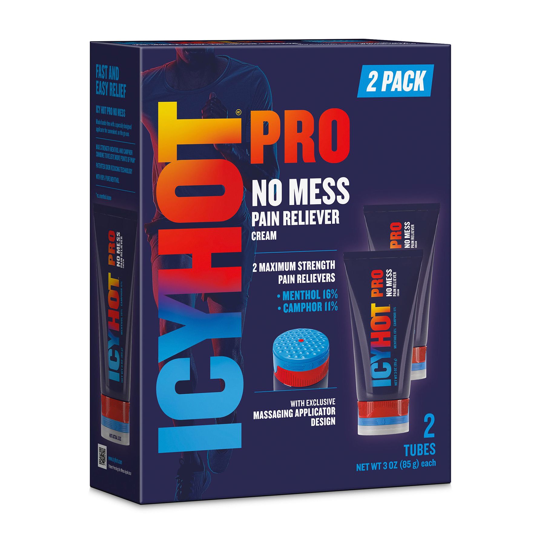 Icy Hot Pro No-Mess Pain Relief Cream Tube, Massaging Applicator With Menthol & Camphor, 2 pk./3 oz.