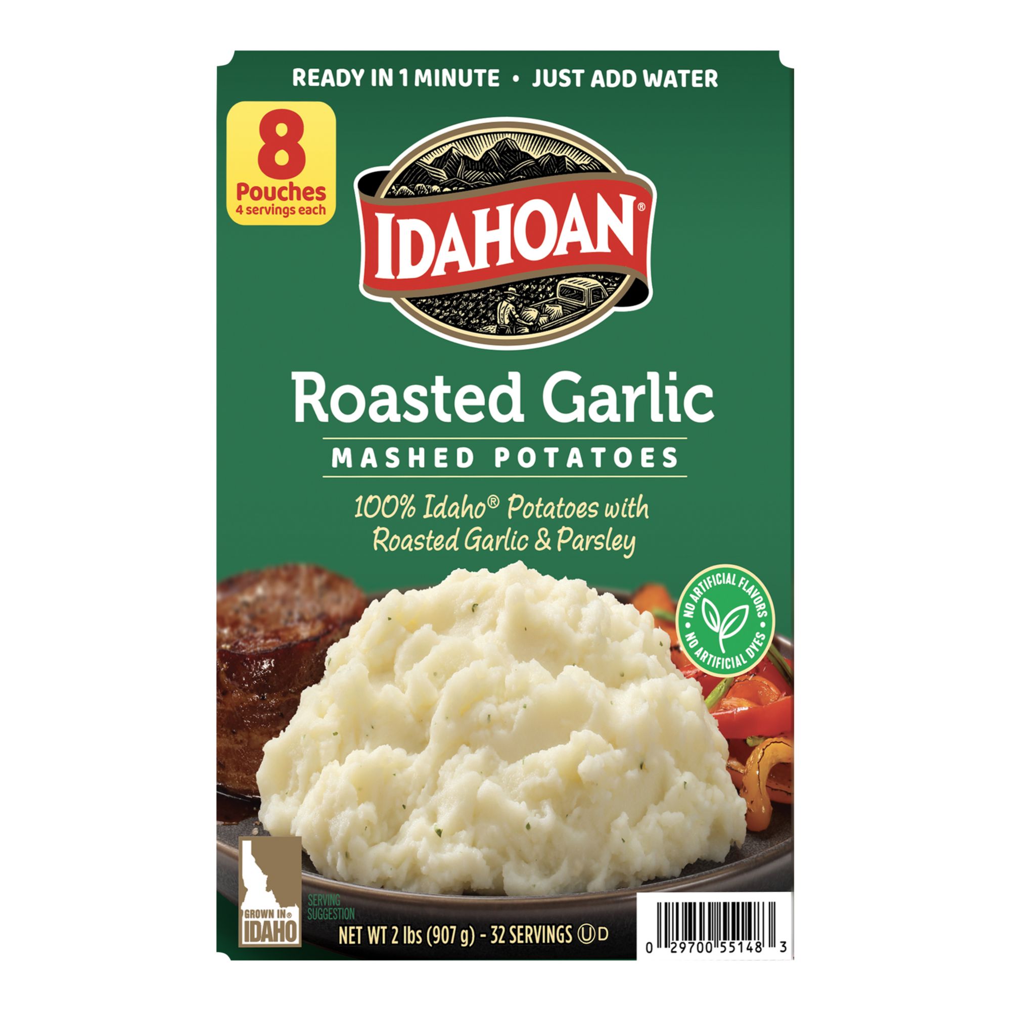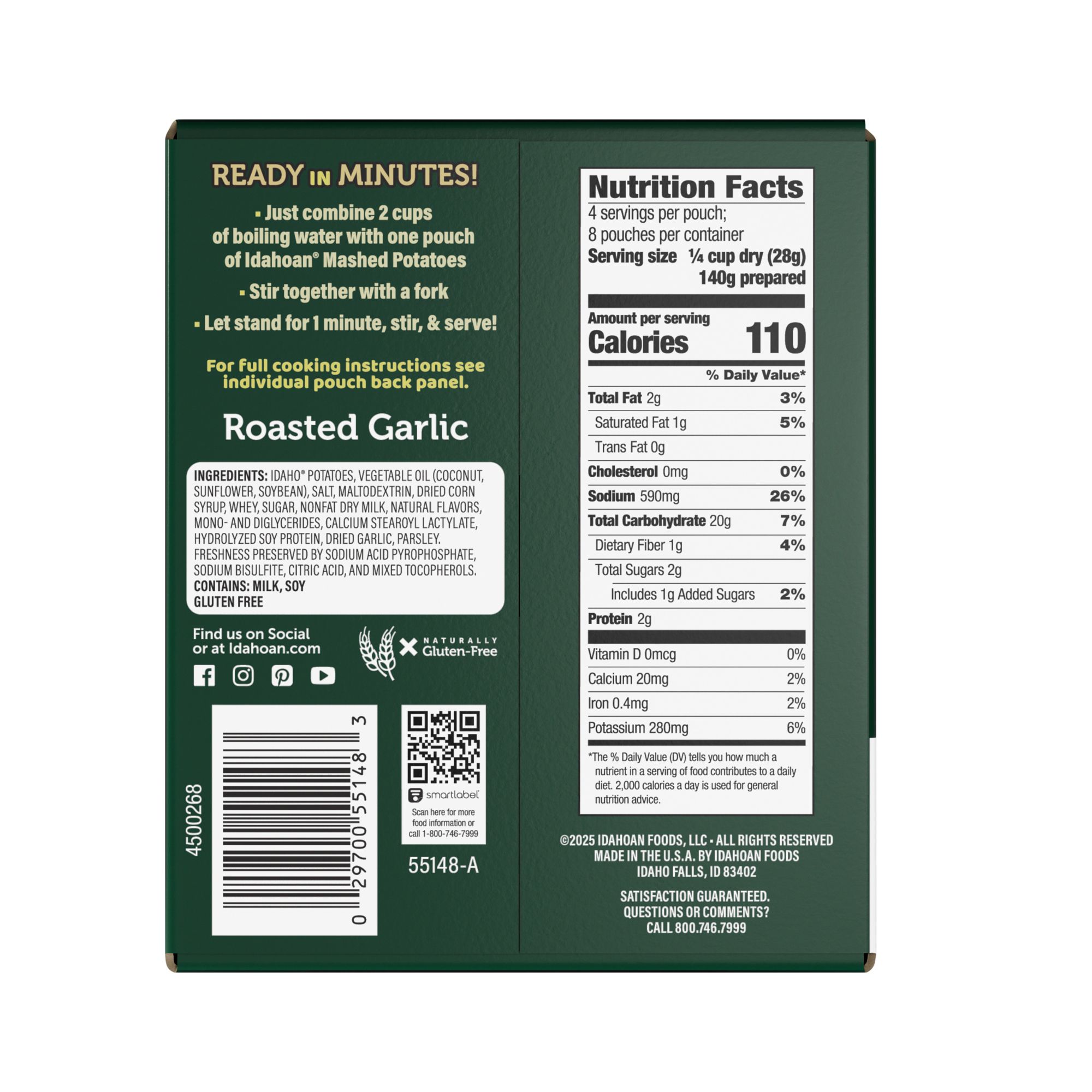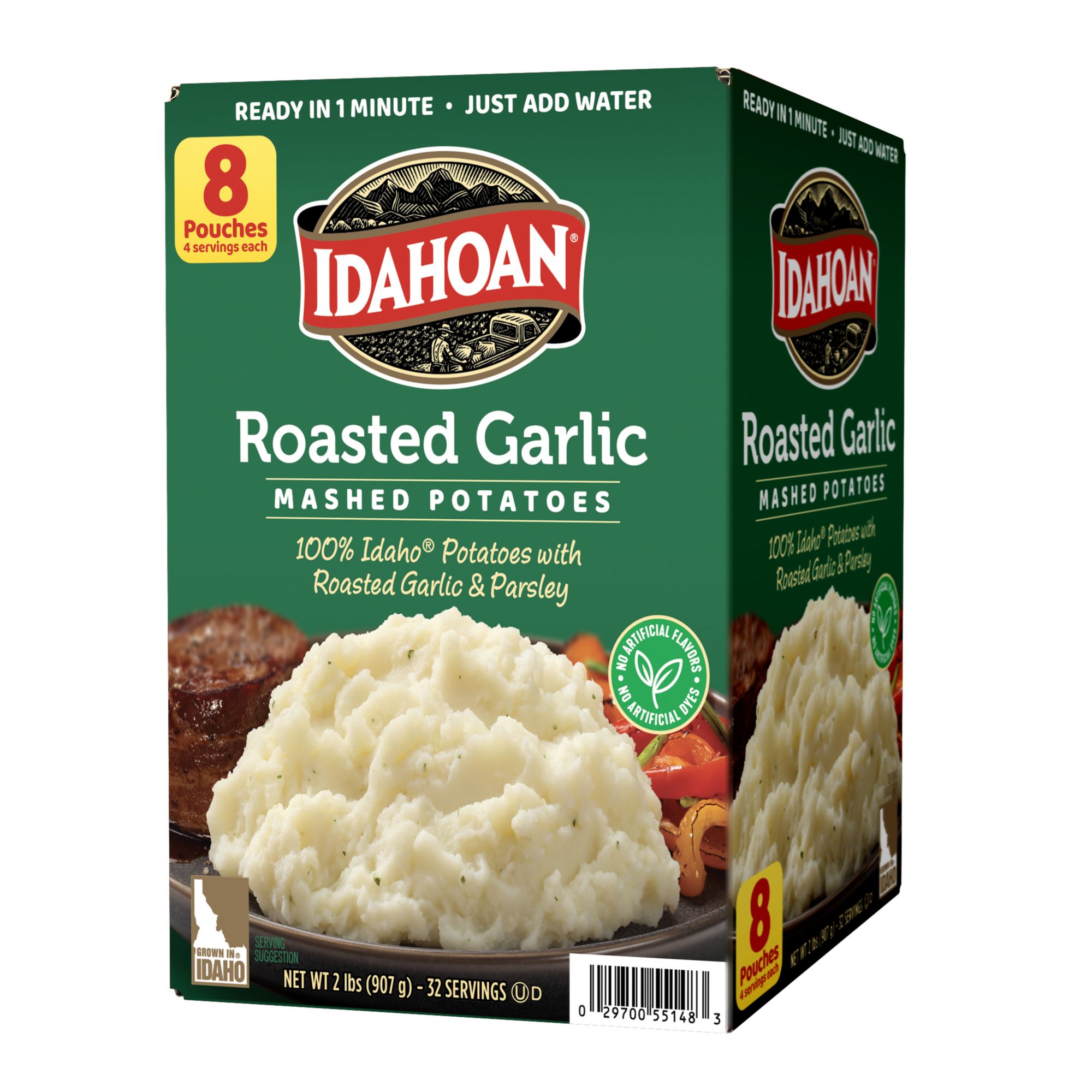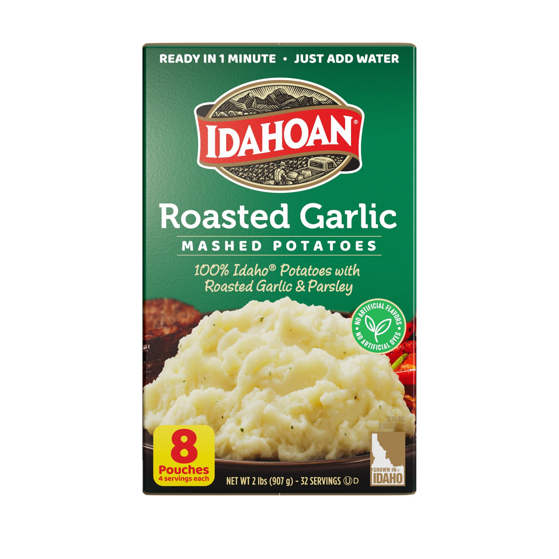 Whip up delicious, rich mashed potatoes in minutes with Idahoan Roasted Garlic Mashed Potatoes! These instant mashed potatoes are always made with 100% Real Idaho potatoes. Perfect for a variety of wholesome recipes, Idahoan Roasted Garlic Mashed Potatoes are easy to prepare and ready in minutes. Simply heat water on stovetop or in a microwave, add the entire pouch of mashed potatoes, and voila! Whether you're looking for traditional comfort food, or wanting a modern spin on classic dishes, Idahoan delivers Homemade Taste - Every Time.