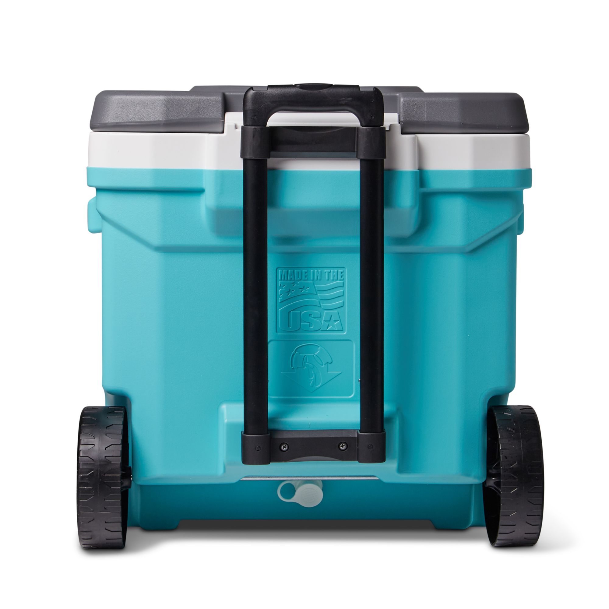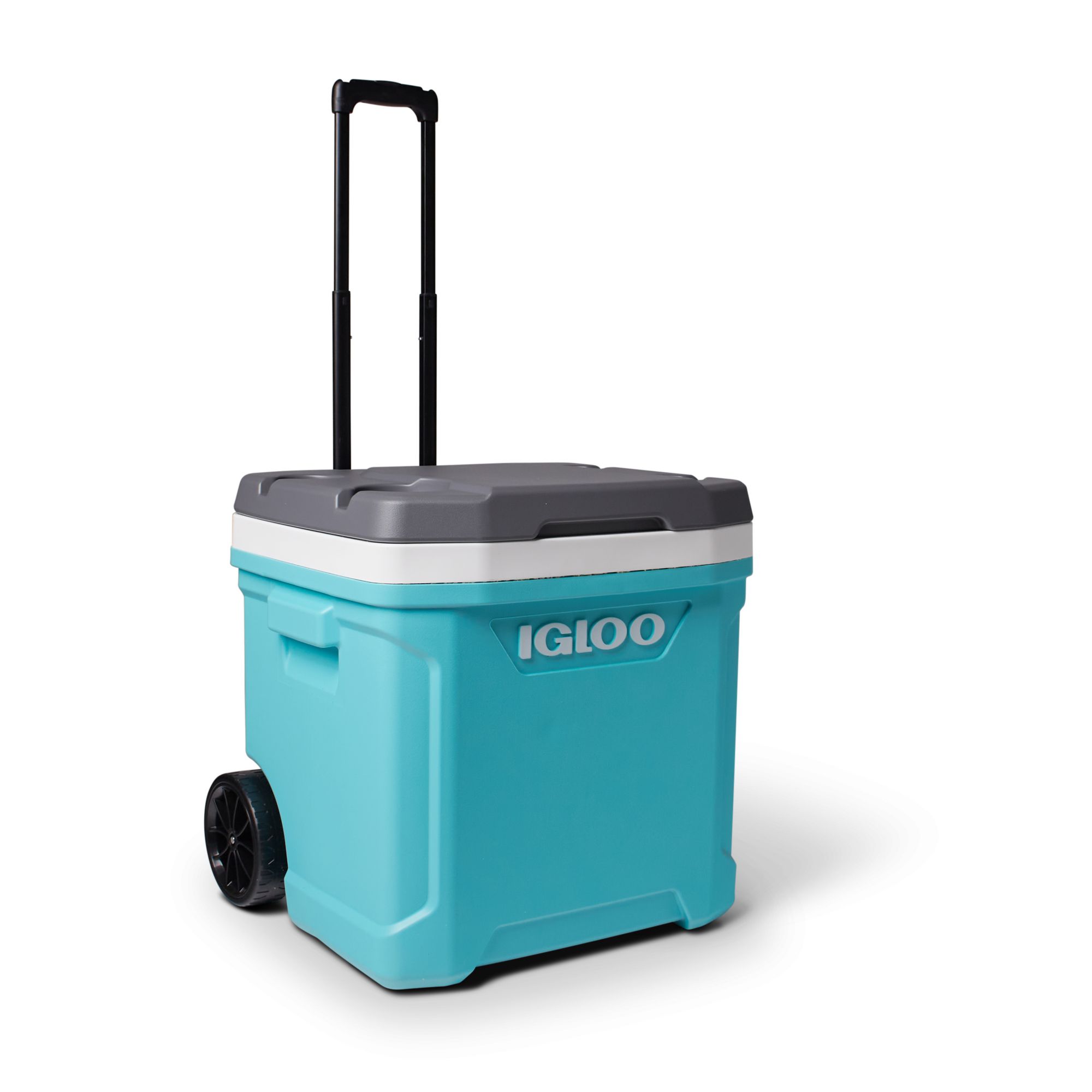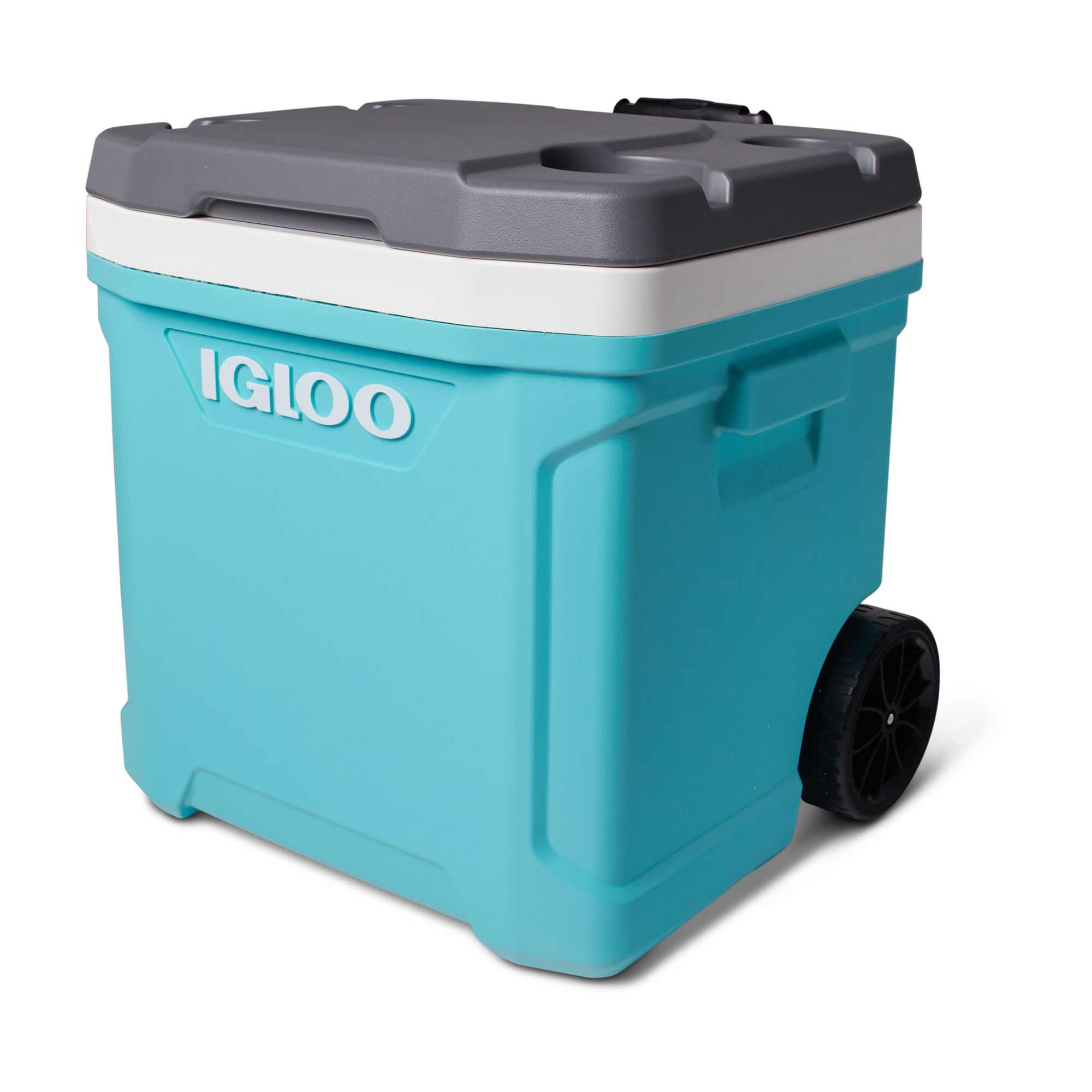 What's next on your adventure list? Will you be heading to the beach, park, or campsite? Keeping drinks and food chilled for your outdoor adventures is one thing, but carrying it all to your destination is another. Good thing the large Igloo Latitude 60 qt. Roller Cooler makes it super easy. Once you pack this spacious cooler with some ice and everyone’s favorite refreshments, the eco-friendly Thermecool insulation will keep everything cold for full enjoyment later on. And hauling everything to your location-Can be enjoyable too, thanks to the sturdy side handles and wheels with a locking, telescoping handle that makes it easy to roll the cooler right along with you, whether you’re pushing or pulling. Plus, the Igloo Cool Riser Technology makes sure your cooler is elevated off any warm or hot surfaces you set it down on so your contents stay cold. The spacious interior fits up to 90-Cans, and whenever you reach in for a cold one, you-Can use one of the four built-in, self-draining cup holders to keep your drink within drink while you hang out. And once you get back home, the drain plug will make draining melted ice a cinch. With the Igloo Latitude 60 Roller along for the ride, your adventure is bound to be the coolest.