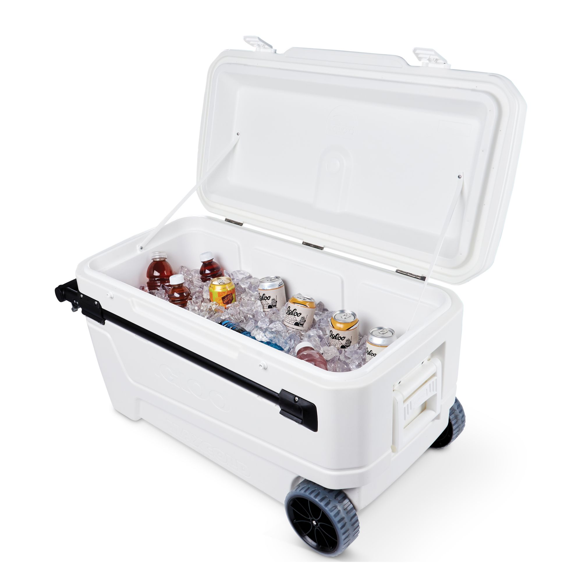 Another Igloo Industry First: Horizontal telescoping handle requires 50% less lifting effort